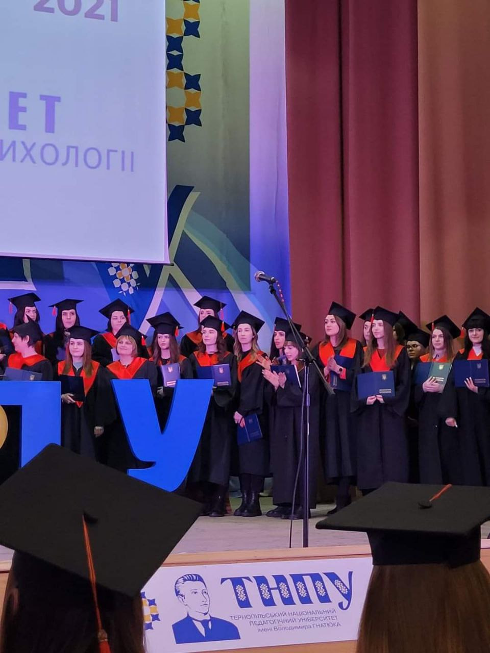 Із вітальним словом виступив декан факультету проф.В.М.Чайка, передавши поздоровлення від ректора ТНПУ ім.В.Гнатюка проф.Б.Б.Буяка. Лунали щирі привітання від заступників декана, завідувачів кафедр, представників викладацького складу. Студенти бакалаврату вітали своїх старших товаришів піснями. Магістри дякували університету за неоціненний скарб – знання під час промов та пісень. Зробити чудові фото на згадку про урочистий день можна було біля святкової фотозони.