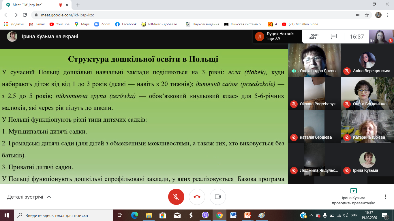 19 жовтня 2020 року магістранти другого курсу факультету педагогіки і психології прочитали лекцію про системи дошкільної освіти у зарубіжних країнах для ЗВО України.
