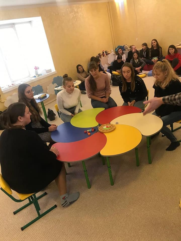 На світлинах бачимо, як студенти пригадують класифікацію ігор, вчаться добирати конструктори з різним дидактичним навантаженням та з різних матеріалів виготовлення для вікових категорій дітей. Особливу увагу звертають на ігри й іграшки, якими користуються діти в період пандемії.