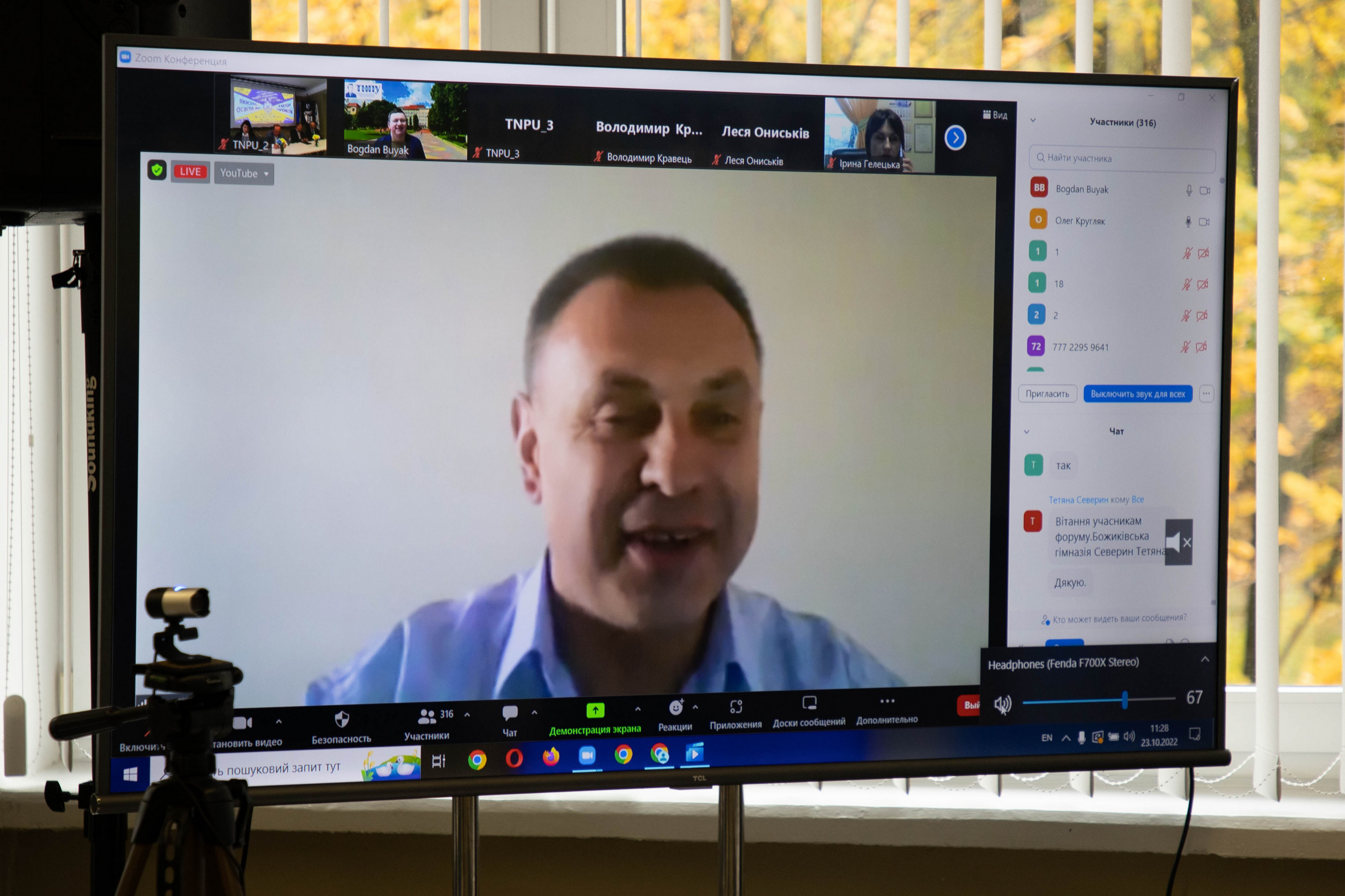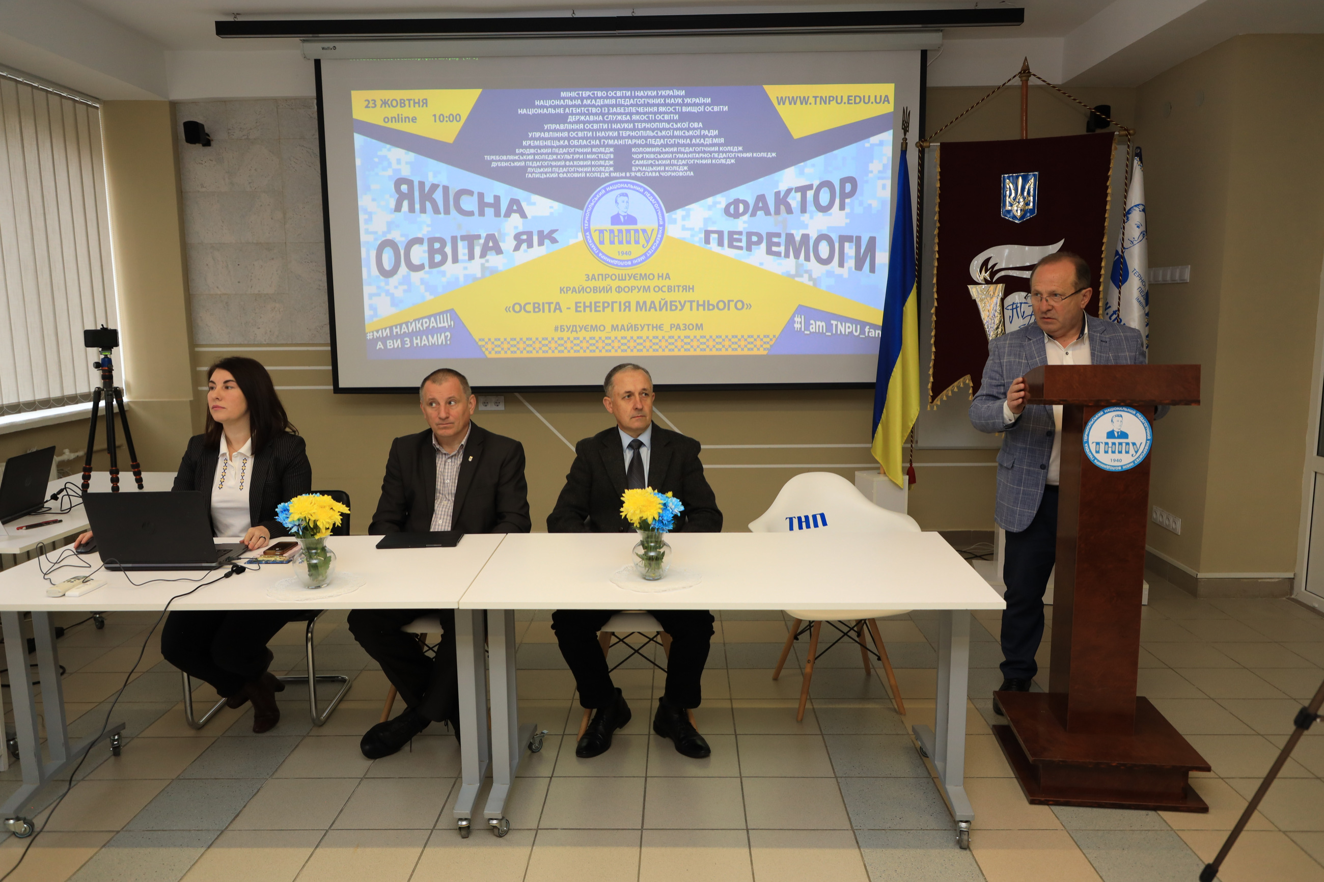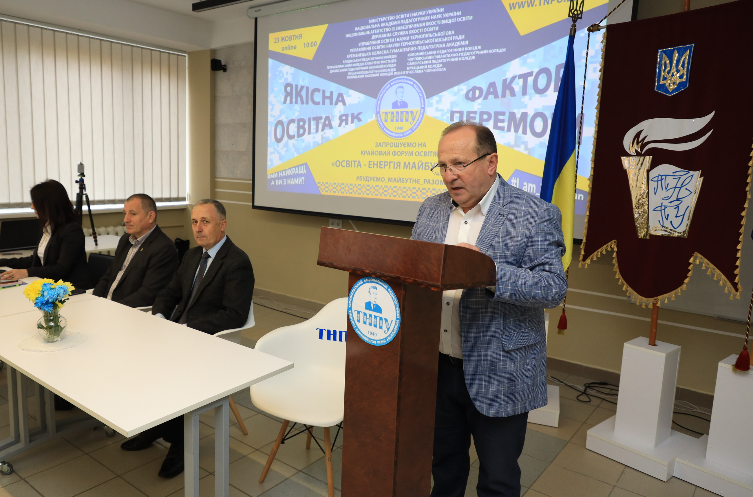 У час, коли Україна бореться за свою цілісність та право бути вільною, надзвичайно актуальною є освіта. Тож 23 жовтня 2022 року уже четвертий рік поспіль у Тернопільському національному педагогічному університеті імені Володимира Гнатюка яскраво та професійно відбувається Крайовий форум освітян «Освіта – енергія майбутнього. Якісна освіта як фактор перемоги», основним ідейником якого є ректор університету, а організатором – вже традиційно факультет педагогіки і психології ТНПУ. Цьогоріч, зважаючи на умови сьогодення, захід відбувався в онлайн-форматі.