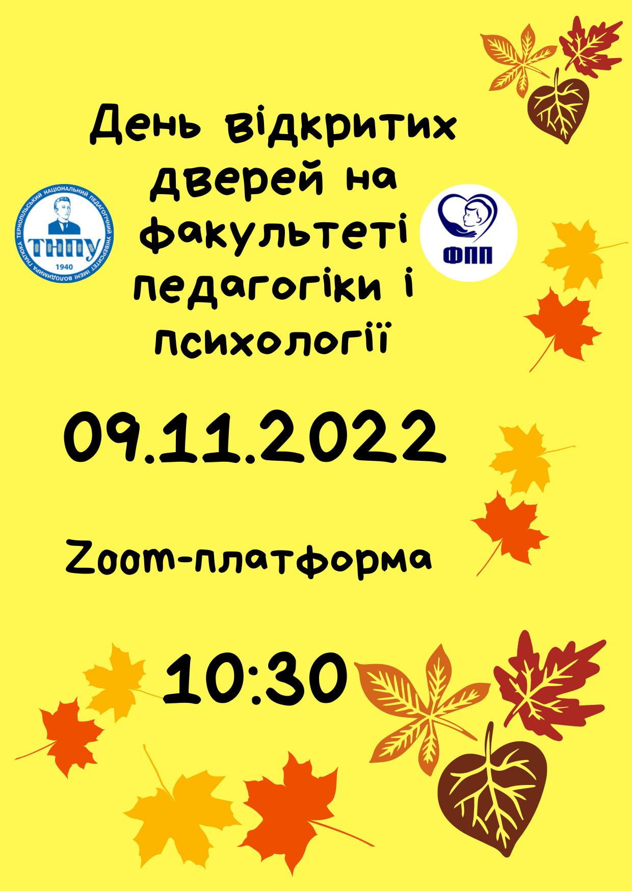 На факультеті педагогіки та психології ТНПУ відбувся День відкритих дверей. Модератором зустрічі був декан ФПП проф.Чайка В.М. Заступники декана - Чайковська Г.Б. та Писарчук О.Т. - розповіли потенційним студентам про актуальну інформацію щодо навчальної та позанавчальної діяльності.