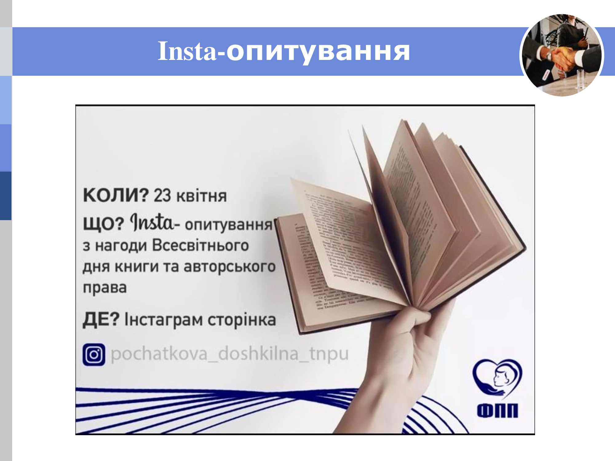 Члени науково-дослідної лабораторії шкільного підручника сердечно вітають шанувальників книги із Всесвітнім днем книги та авторського права! Нехай ці скарби духовної культури роблять нас мудрішими, патріотичнішими, сильнішими, здатними вистояти і ПЕРЕМОГТИ! Нехай читання стане для кожного із нас ціннісним смислом!