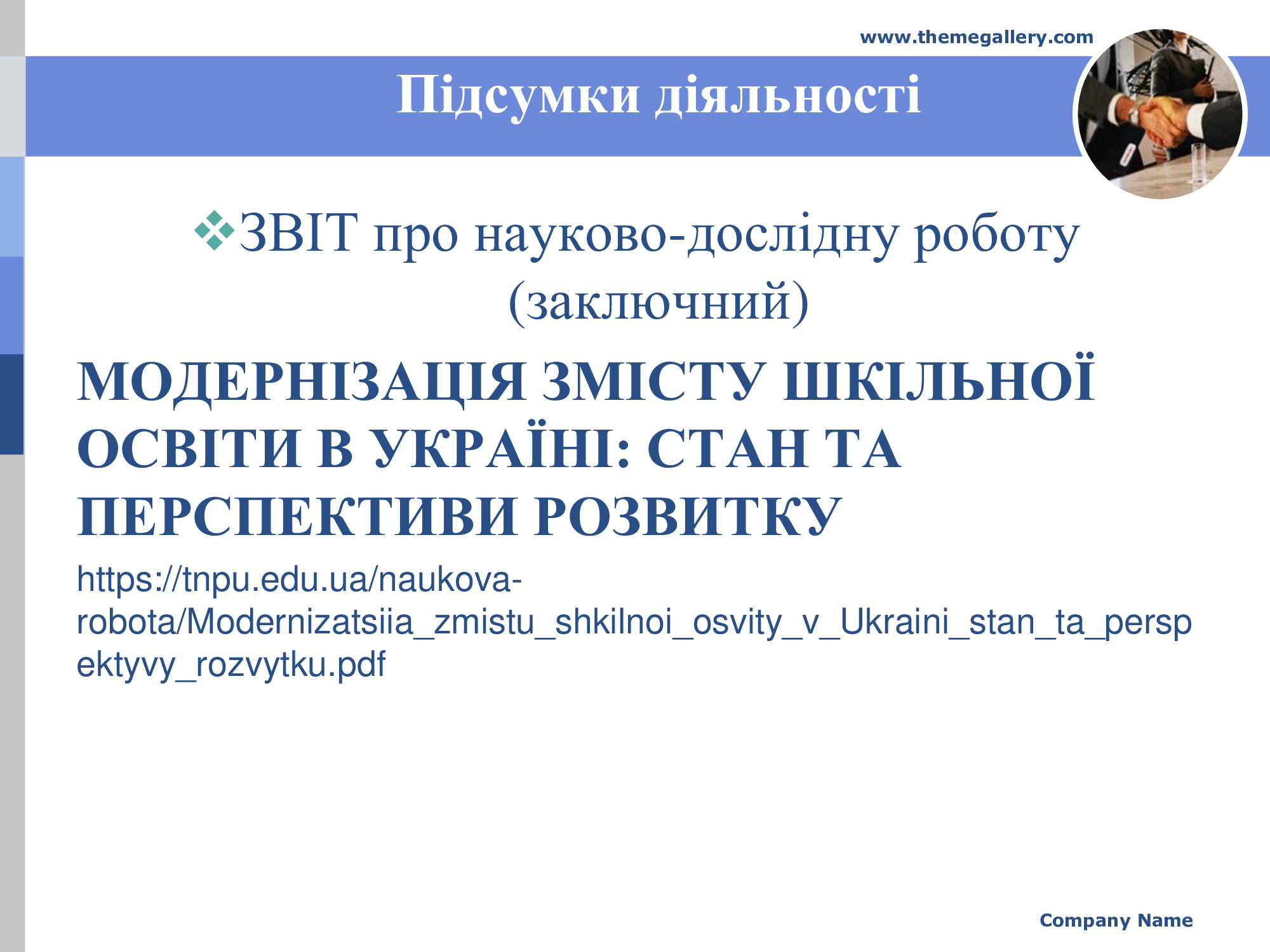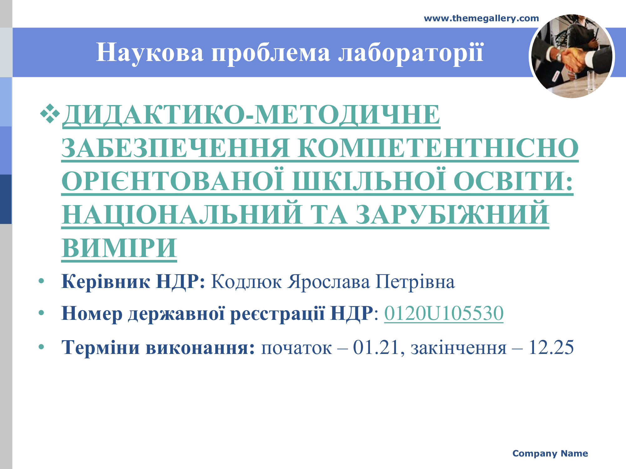 – розроблення третьої науково-дослідної теми «Дидактико-методичне забезпечення компетентнісно орієнтованої шкільної освіти: національний та зарубіжний виміри» (державний реєстраційний номер: 0120U105530; термін виконання: 01.01.2021–31.12.2025);