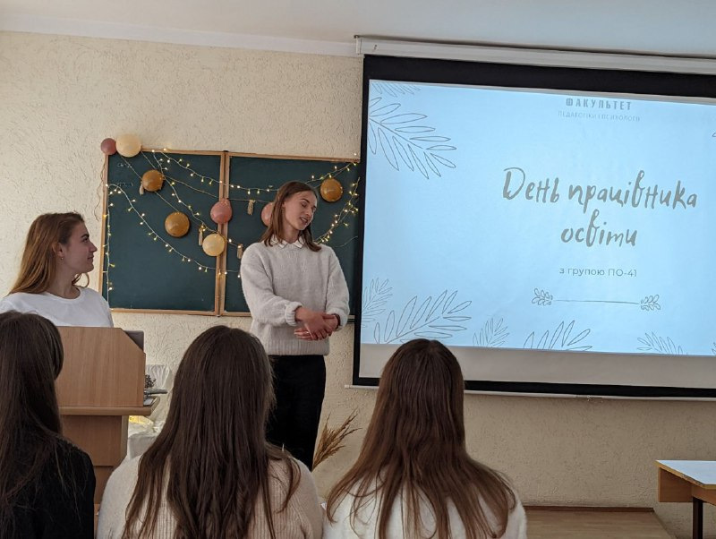 У кожного вчителя є свій вчитель. Тому студенти групи ПО-41 факультету педагогіки і психології (майбутні педагоги) влаштували неймовірне свято для викладачів. Святкування проходило у формі конкурсів, де дві команди учасників змагалися між собою, креативно виконуючи завдання. Чесне журі підраховувало кількість правильних відповідей та нагороджувало переможців конкурсів