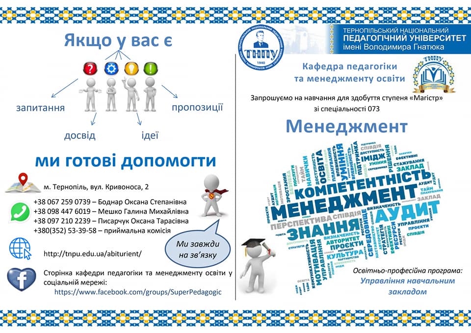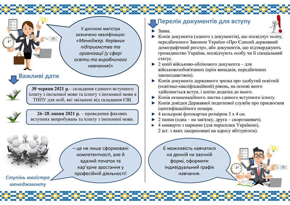 Запрошуємо на навчання для здобуття освітнього ступеня "Магістр" зі спеціальності 073 Менеджмент! Детальніше - у буклеті.