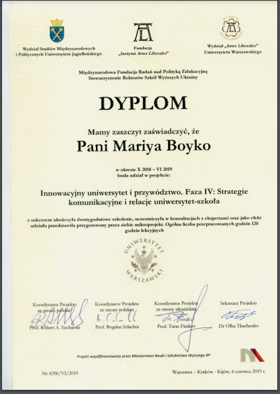 3. Бойко М. Моніторинг в системі управління якістю освіти в педагогічному університеті / Марія Бойко // Perspektywy rozwojuorganizacji w świetleparadygmatówzarządzania i finansów. StudiaZarządzania i FinansówWyższejSzkołyBankowej w Poznaniu. - 2017. - Nr 13. - S. 91 - 100.