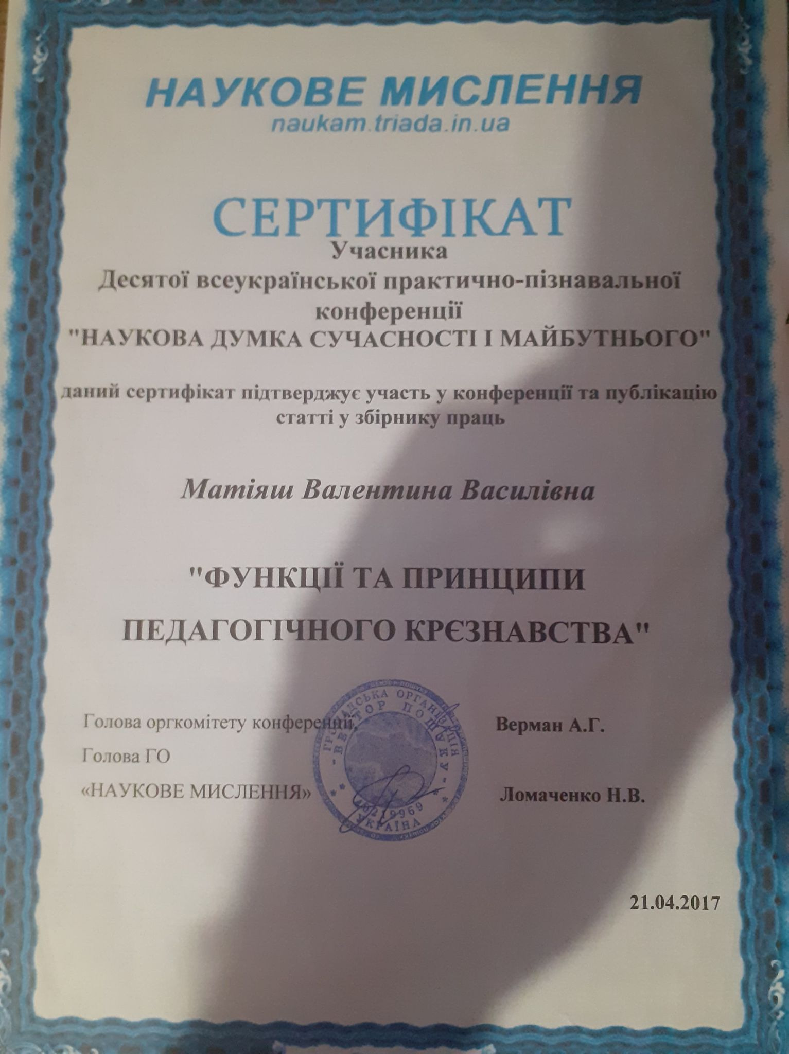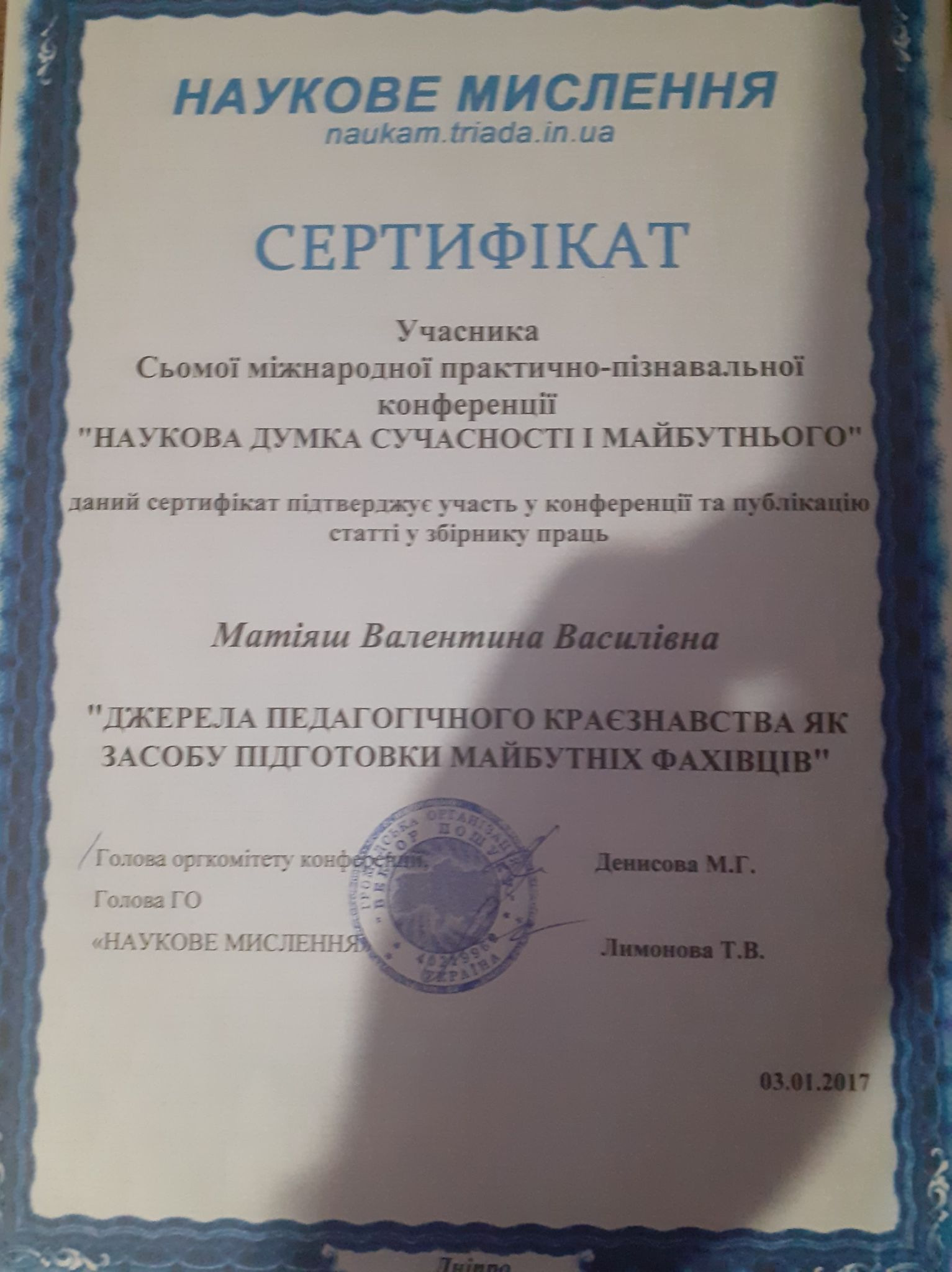 У 1987 році випускниця Тернопільського державного педагогічного інституту імені Я.Я Галана спеціальність «Педагогіка і методика початкового навчання»