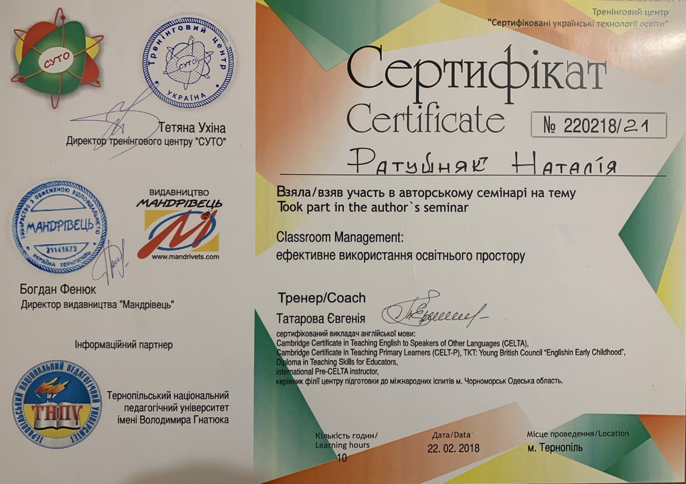 4.Yankovych O., Chaika V., Yashchuk I., Binytska K., Kokel A., Pysarchuk O. & Ratushniak N. Training of future specialists in primary education in universities of Ukraine and Poland for the formation of a class team. Espacios. 2019. Vol. 40 (Number 44). P. 22–38 (scopus)