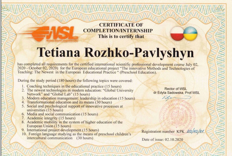 4. Tetiana Rozhko-Pavlyshyn, Requirements for forming the social competence of teachers of preschool educational establishments. Збірник наукових праць. Професійна освіта: методологія, теорія та технології. Вип. 7. Переяслав-Хмельницький (Київ. обл.) : 2018. С.155-171.