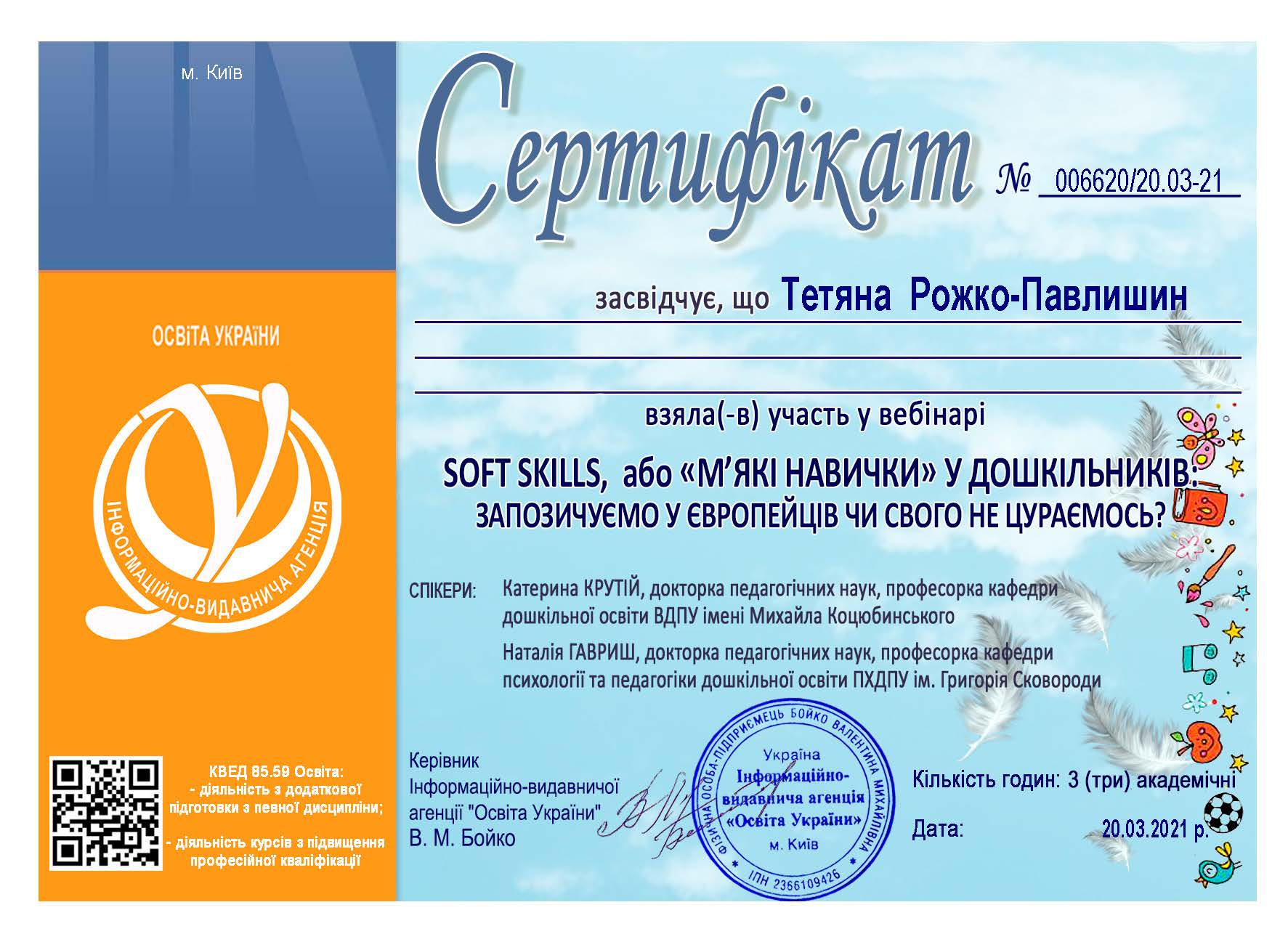 3. Рожко-Павлишин Т. А. Умови професійної успішності вихователя закладу дошкільної освіти. Збірник наукових праць. Професійна освіта: методологія, теорія та технології. Вип. 5. Переяслав-Хмельницький (Київ. обл.) : 2017. С.182-198.