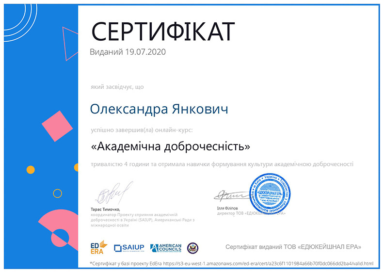 Yankovych O. I., Chaika V. M., Ivanova T. V., Binytska K. M., Kuzma I. I., Pysarchuk O. T., Falfushynska H. I. Technology of forming medialiteracy of children of the senior pre-school age of Ukraine. Cloud Technologies in Education. / Eds. Kiv, A. E., Soloviev, V. N. CEUR-WS.org, online. P. 126–144. URL: http://ceur-ws.org/Vol-2433/paper07.pdf (Scopus)