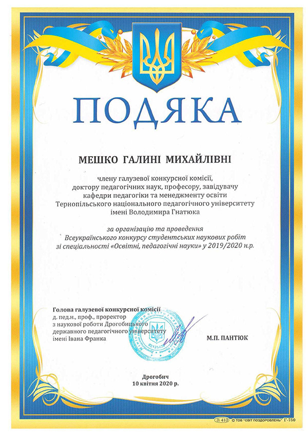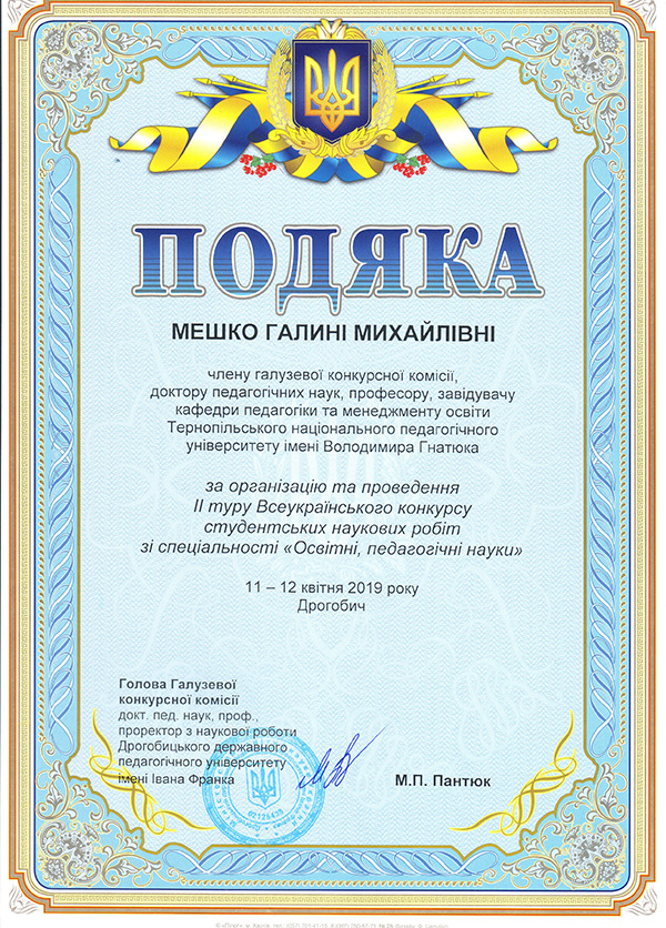Meshko H.M,.Meshko O.I. Formation of autopsychological competency of future teachers in the process of the study of psychological and pedagogical disciplines. European Humanities Studies: State and Society (Poland – Ukraine). Issue 4(I). Krakow : Fundacja im. M. Reja, 2018. 214 p. P. 173–187.