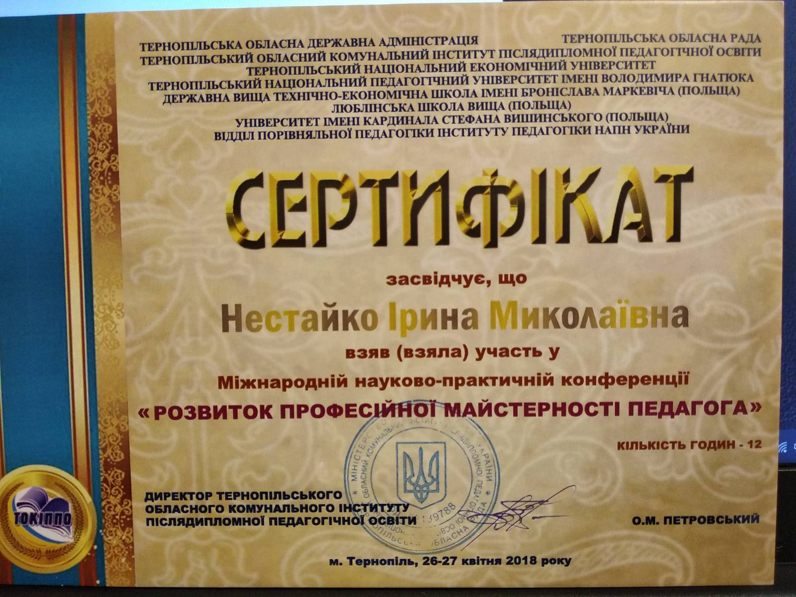 - Нестайко І.М. «Професійний розвиток педагога (польський досвід)». Збірник матеріалів Міжнародної науково-практичної конференції «Розвиток професійної майстерності педагога» (м.Тернопіль, Україна, 26-27 квітня 2018 року : СМП «Тайп», 2018. – 383 с., с.225-228