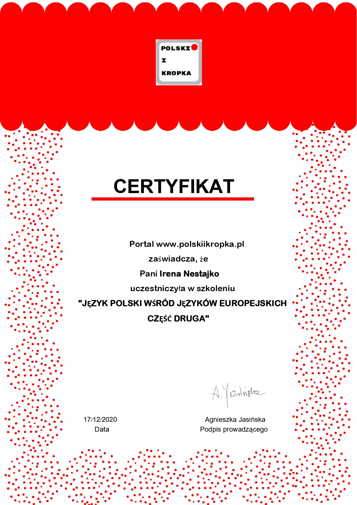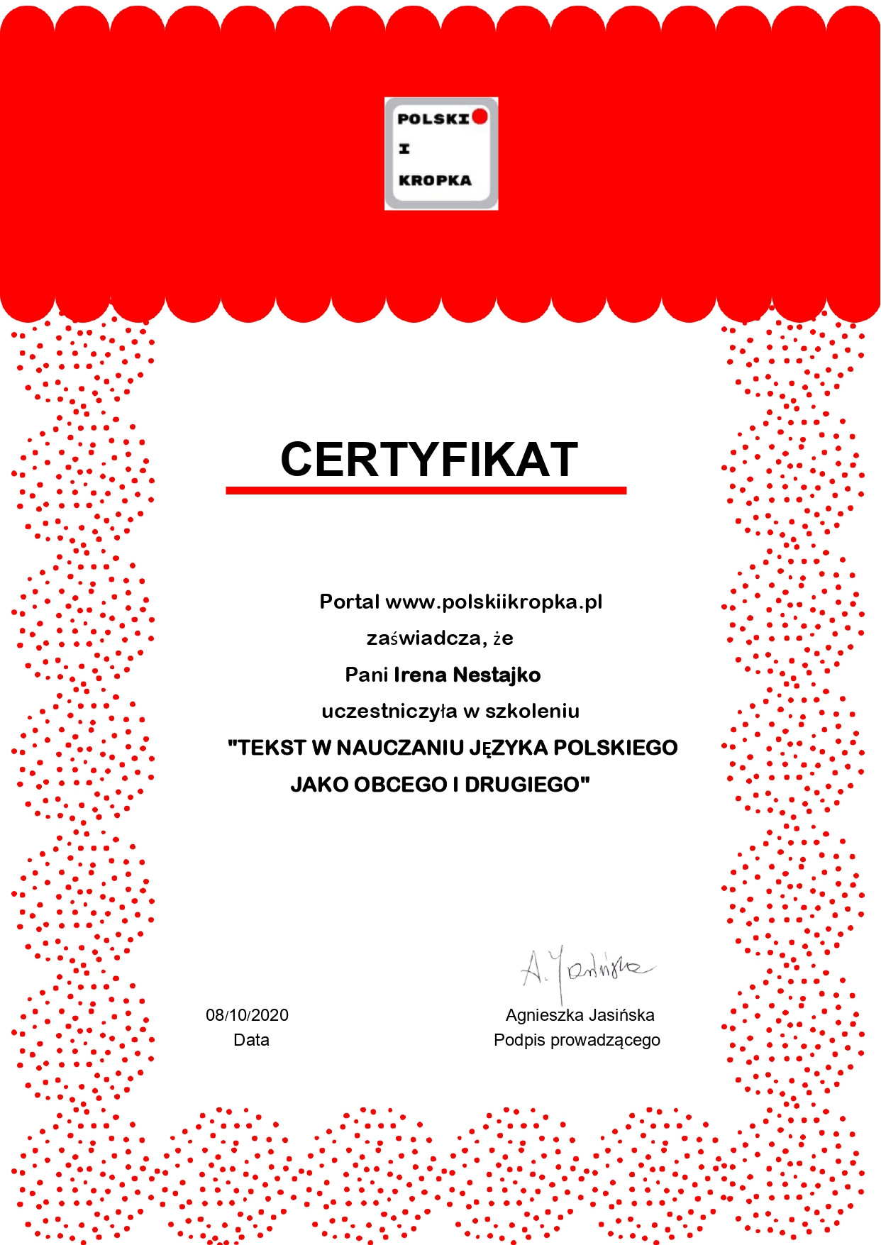 - Nestajko I. Zawodowo-pedagogiczne przygotowanie przyszłych nauczycieli w RP Polsce w kontekście eurointegracyjnej polityki oświatowej: teoretyczne aspekty i doświadczenie. Парадигмальна модель керівника сфери освіти у контексті євроінтеграційних процесів: збірник матеріалів міжнародного форуму управлінської діяльності (18-19 травня 2019 року ТНПУім. Володимира Гнатюка). Тернопіль. С.90-95