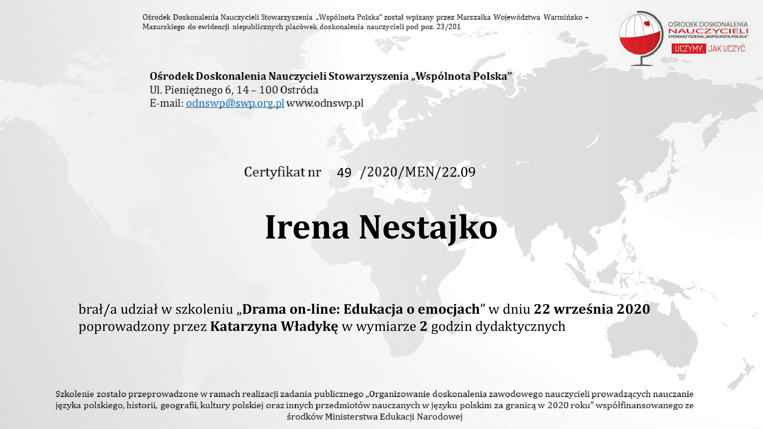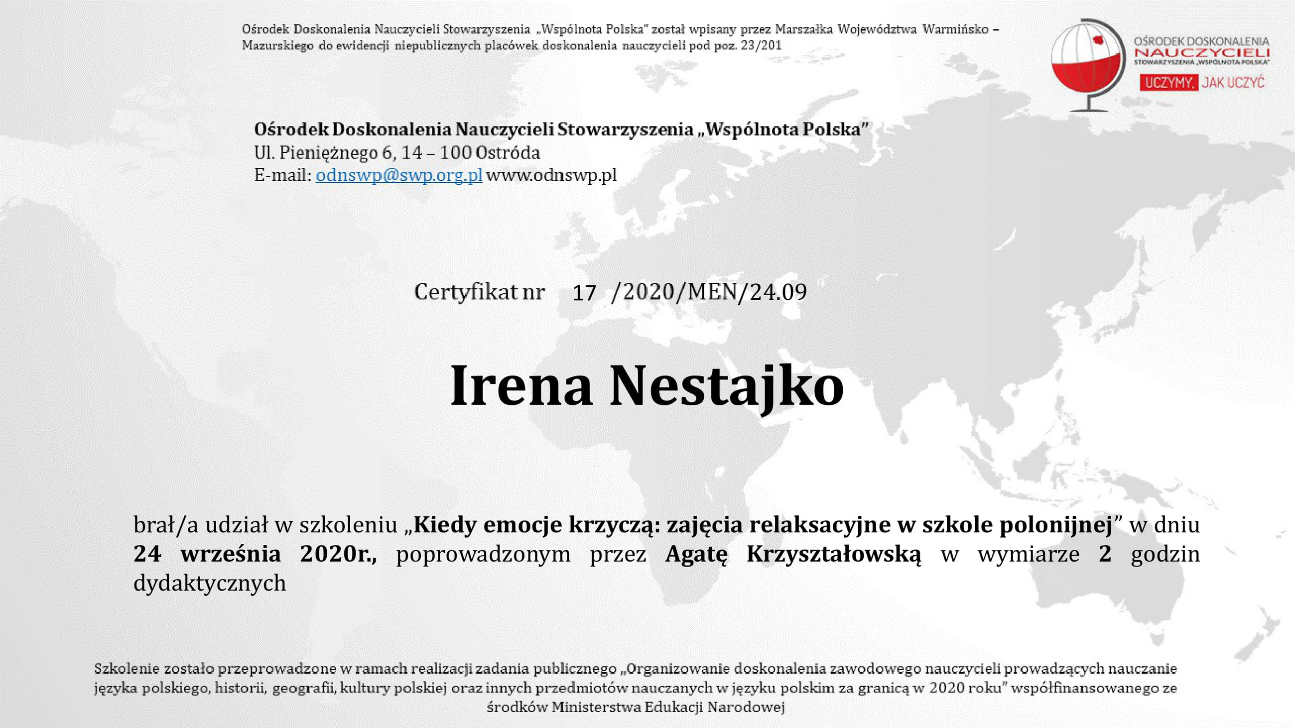 - Нестайко І.М. Kompetencje menedżera oświaty (Polskie doświadczenie). Актуальні проблеми управлінняз акладами освіти у контексті стратегії модернізації освітньої галузі: колективна монографія / За загальною редакцією В.П. Кравця, Г.М. Мешко. Тернопіль: ТНПУ ім. В.Гнатюка, 2020. 310с. С. 276-294.