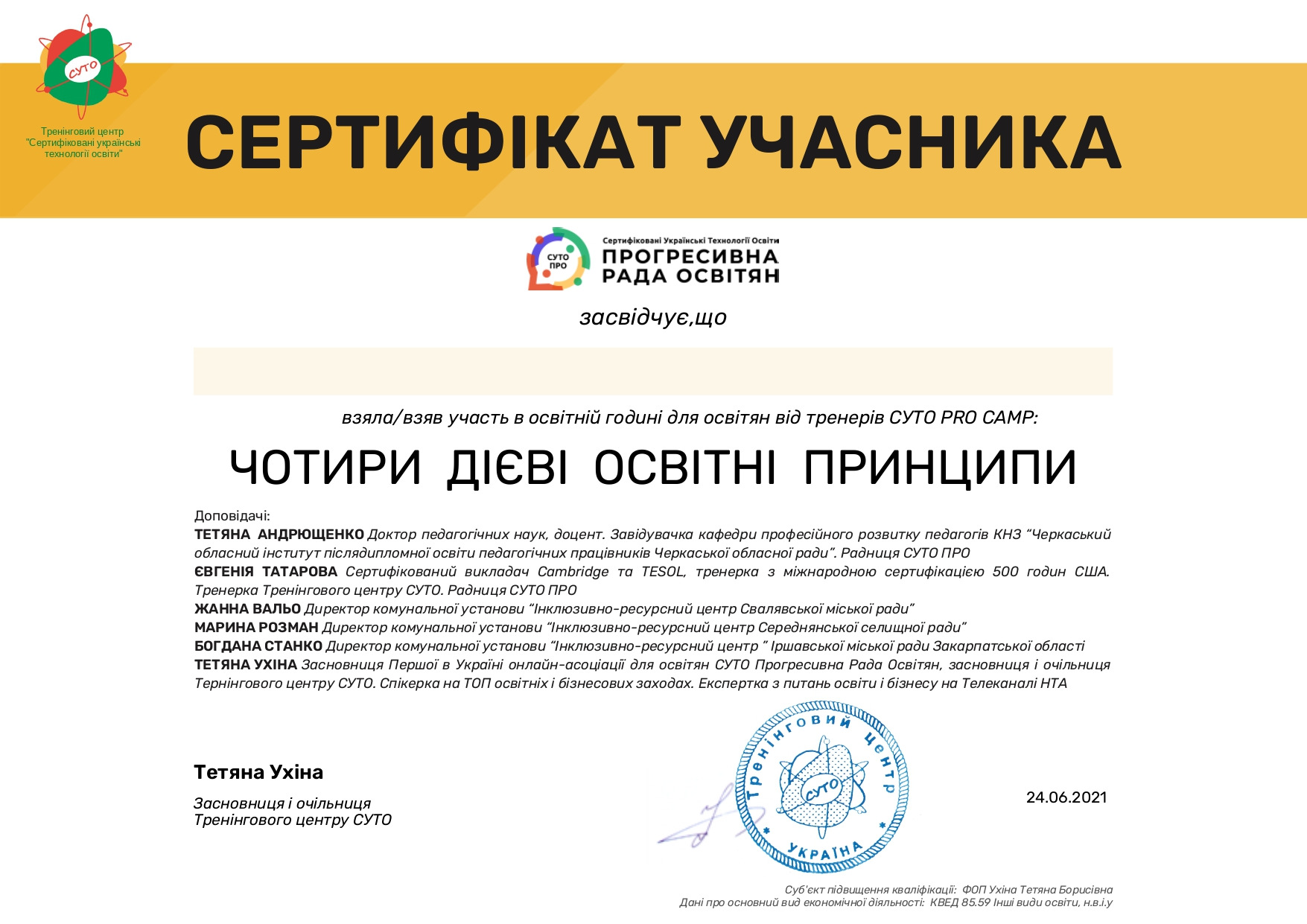 Тема стажування: «Інноваційні методи і технології у європейській освітній практиці (Педагогічні науки. Навчання. Науки про освіту. Управління і адміністрування. Менеджмент).