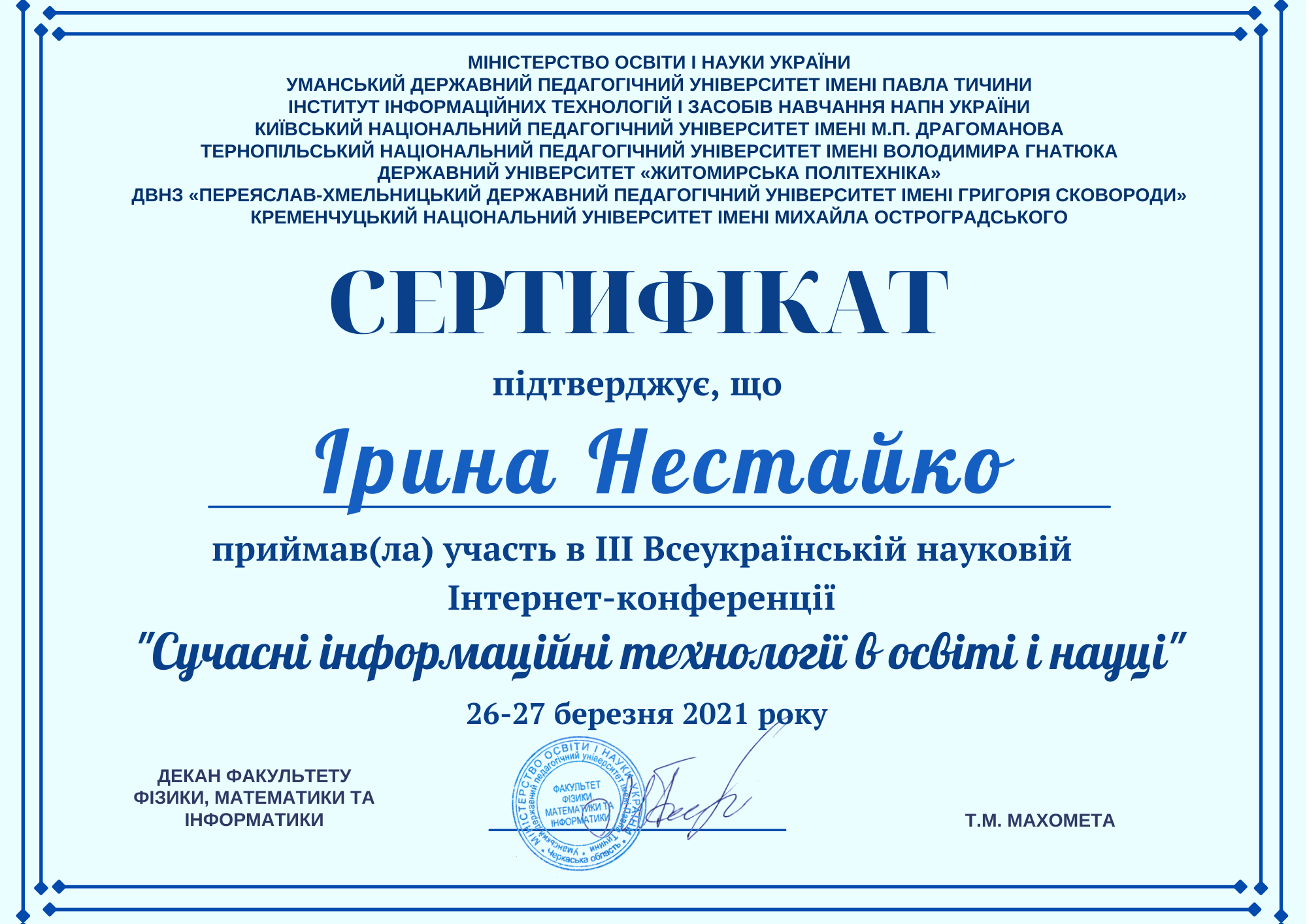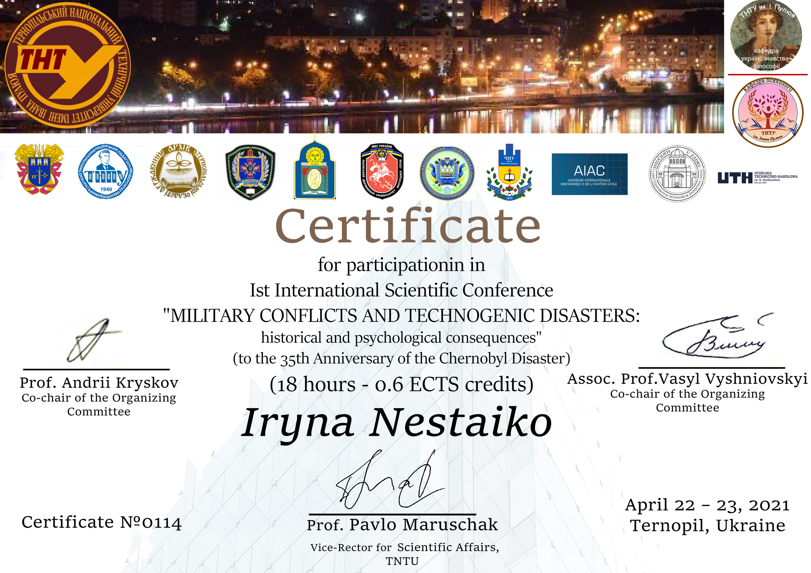 - Нестайко І.М. «Культура школи в системі польської інклюзивної освіти» І Всеукраїнська міждисциплінарна науково-практична конференція «Інклюзивна освіта: ідея, стратегія, результат» (8 квітня 2021 р. на базі інклюзивно-ресурсного центру Тернопільського національного педагогічного університету імені Володимира Гнатюка)