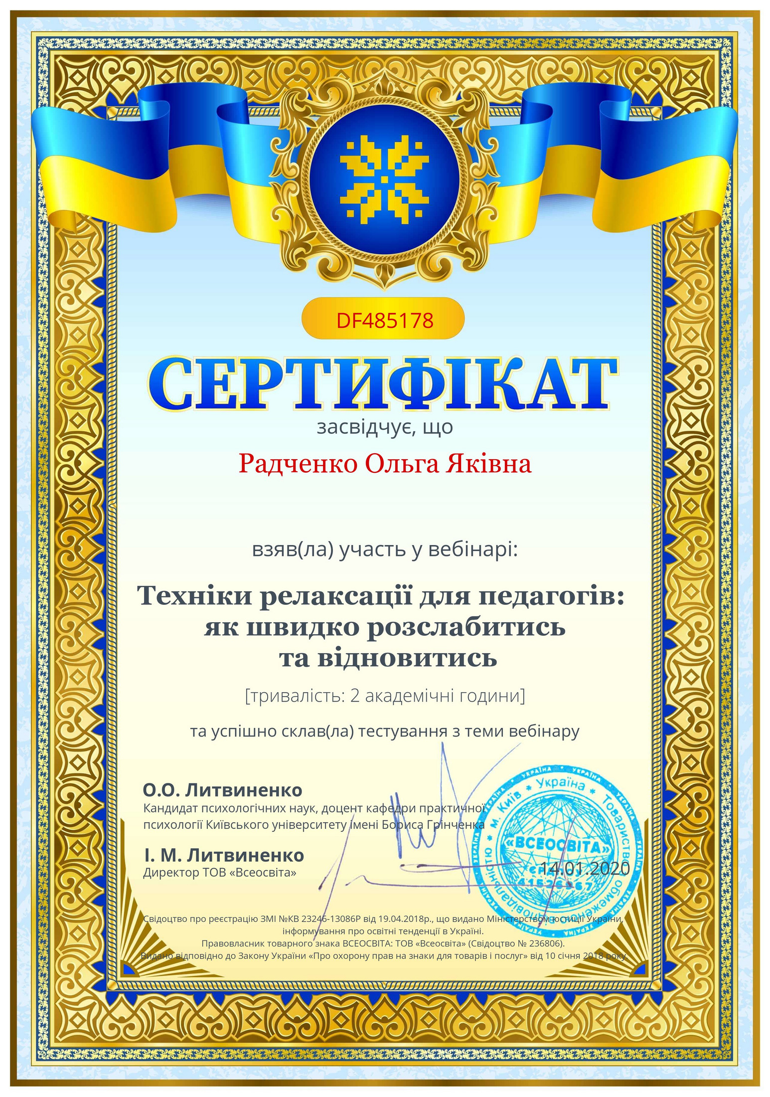 - Радченко О. Я. Педагогічне стимулювання професійного зростання як управлінська проблема. Розвиток професіоналізму сучасного педагога в постнекласиній парадигмі. Матеріали Міжнародної науково-практичної конференції. м.Черкаси, 9-10 квітня 2019 р. Черкаси: Видавець Гордієнко Є.І. С. 44-46.