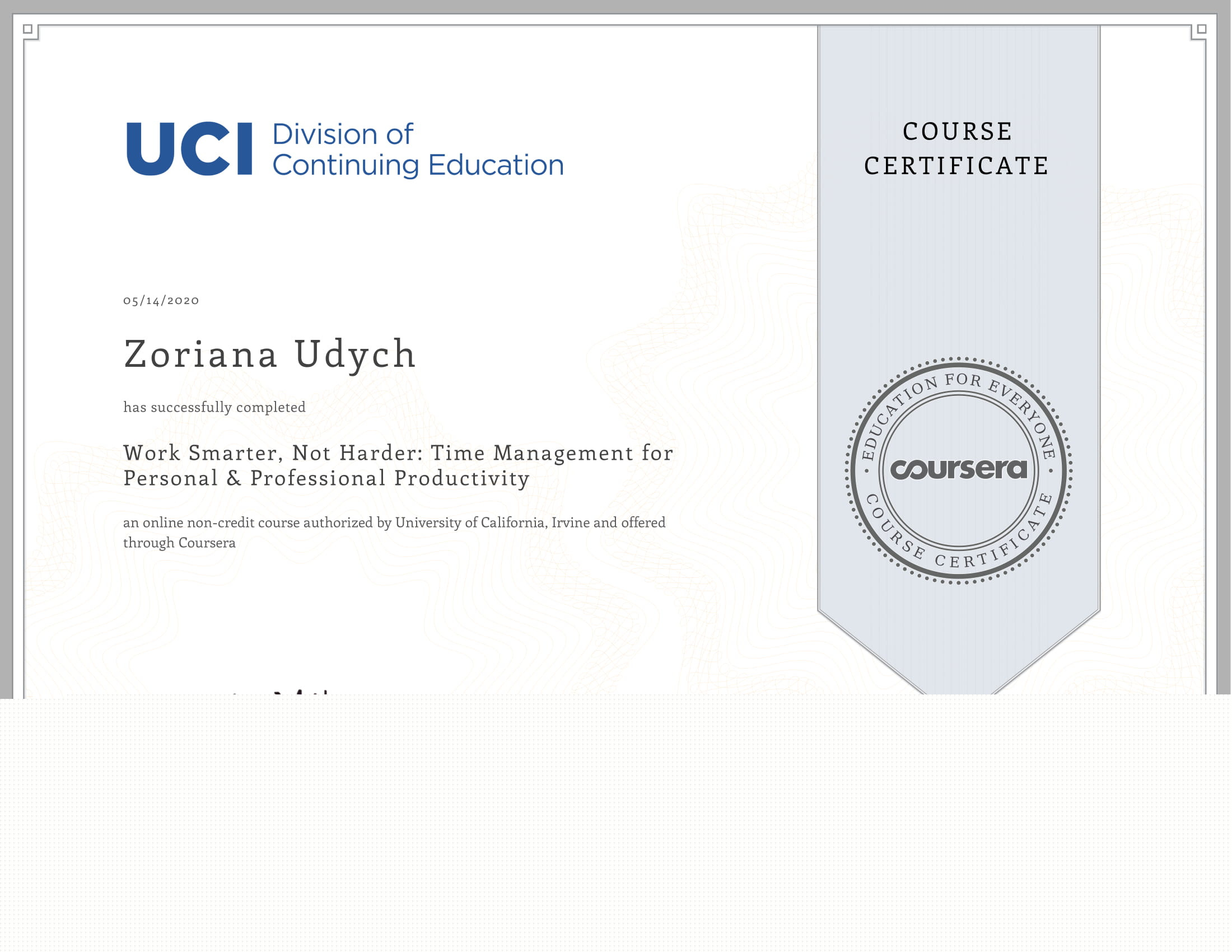 З 2005 р. до 2010 рр. навчалася в аспірантурі Інституту педагогічної освіти і освіти дорослих НАНП.
