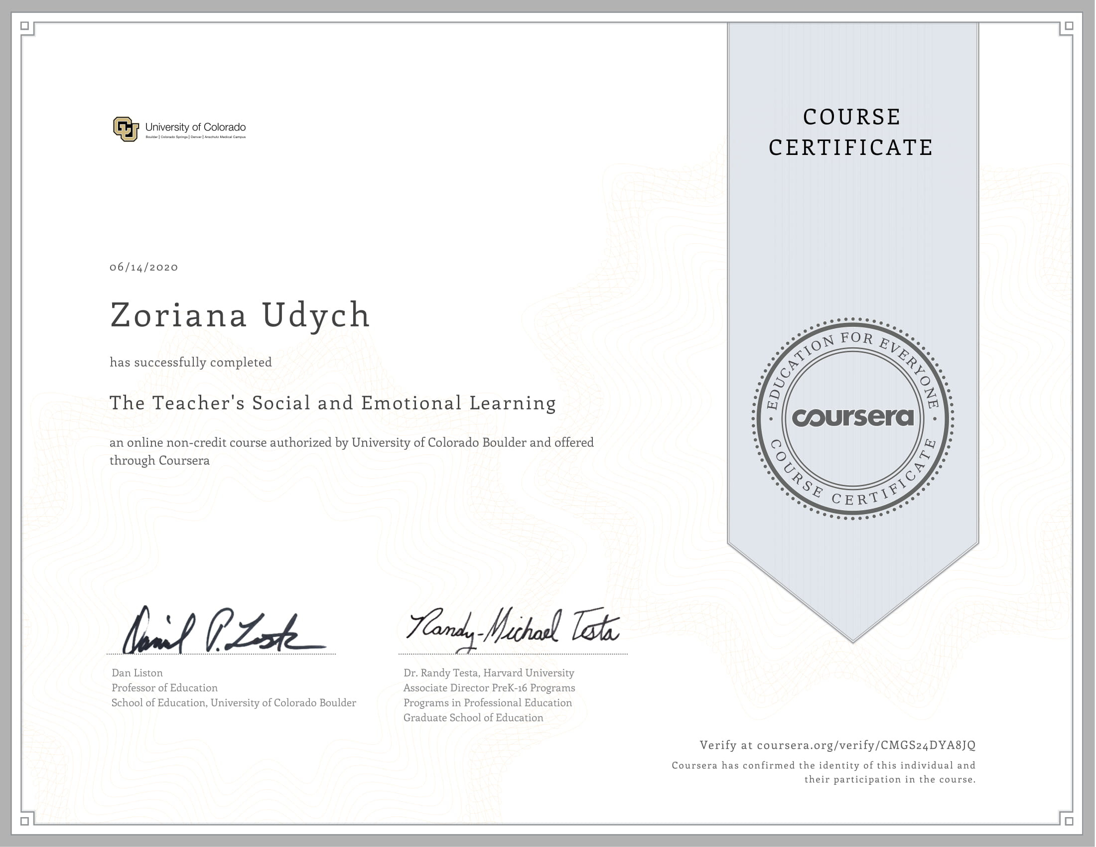 З 2017 р. зарахована до докторантури за спеціальністю 011 освітні, педагогічні науки (Спеціалізація – теорія і методика професійної освіти). Тема дисертації: «Теоретичні і методичні засади психолого-педагогічної підготовки майбутніх учителів до роботи в інклюзивному середовищі закладів загальної середньої освіти».