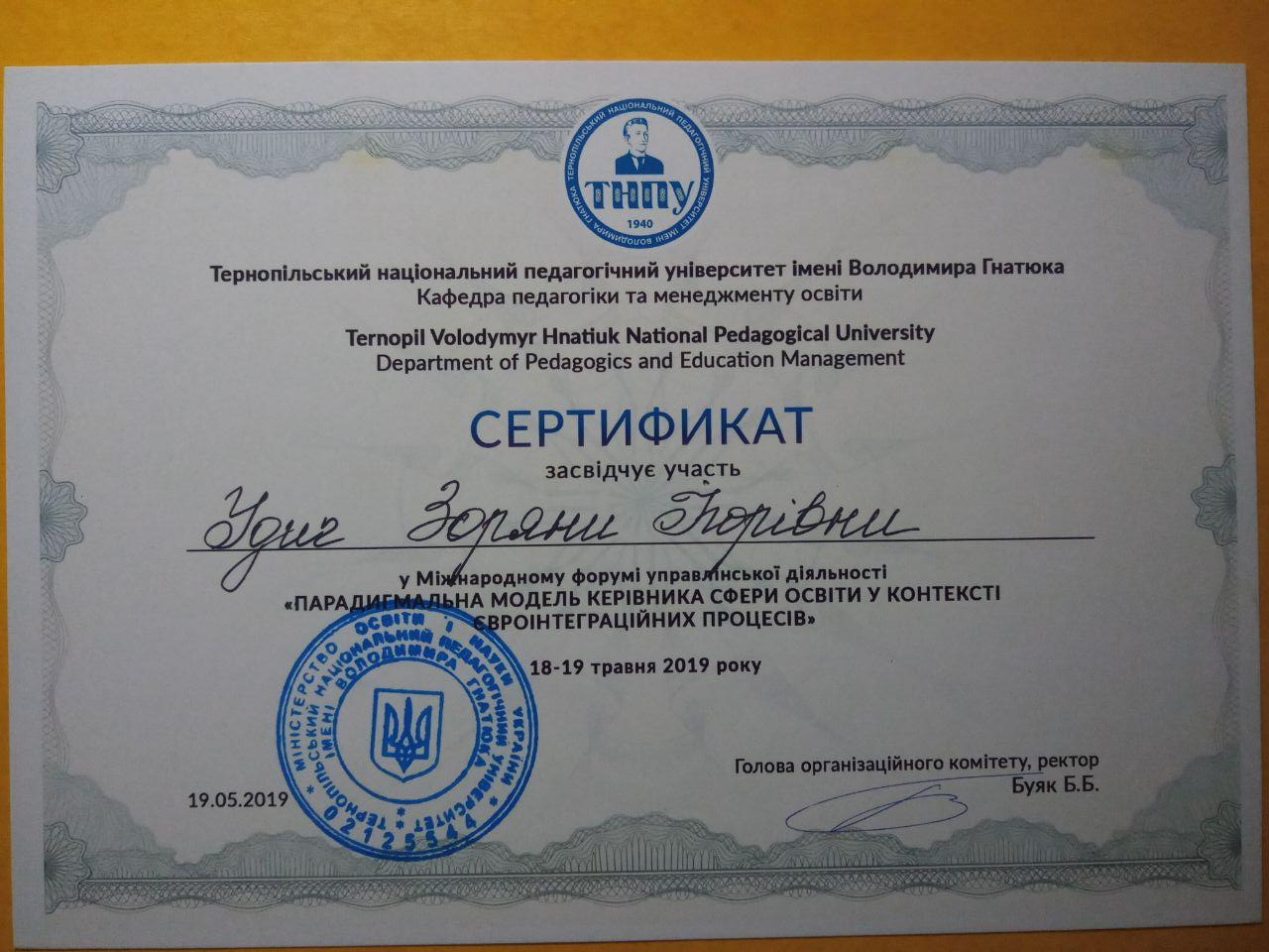 Удич З.І. Інклюзивна складова професійної компетентності керівника закладу загальної середньої освіти. Парадигмальна модель керівника сфери освіти у контексті євроінтеграційних процесів: Матеріали Міжнародного форуму управлінської діяльності (18-19 травня 2019 року, м. Тернопіль). Тернопіль: КРОК, 2019. С. 273-278.