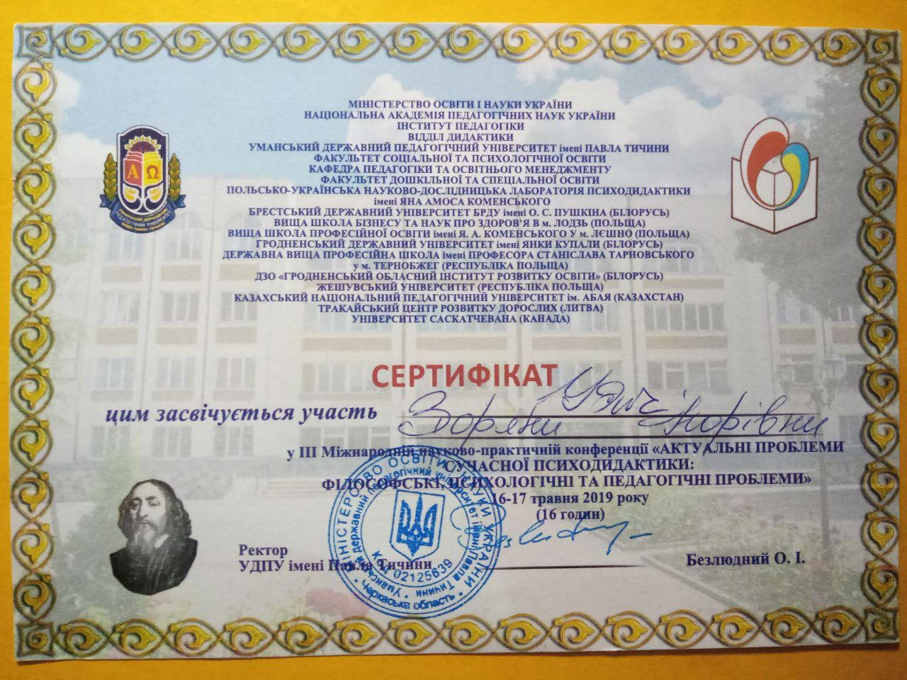 Удич З.І. Проблеми підготовки майбутніх учителів до роботи в умовах інклюзивного закладу середньої загальної освіти. International scientific conference «Modernization of the educational system: world trends and national peculiarities» Conference Proceedings, February 23. Kaunas: Izdevnieciba «Baltija Publishing». 2018. Р. 173-175.