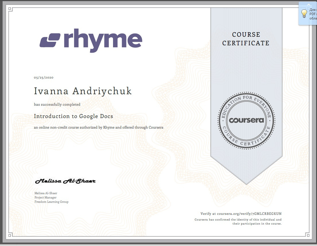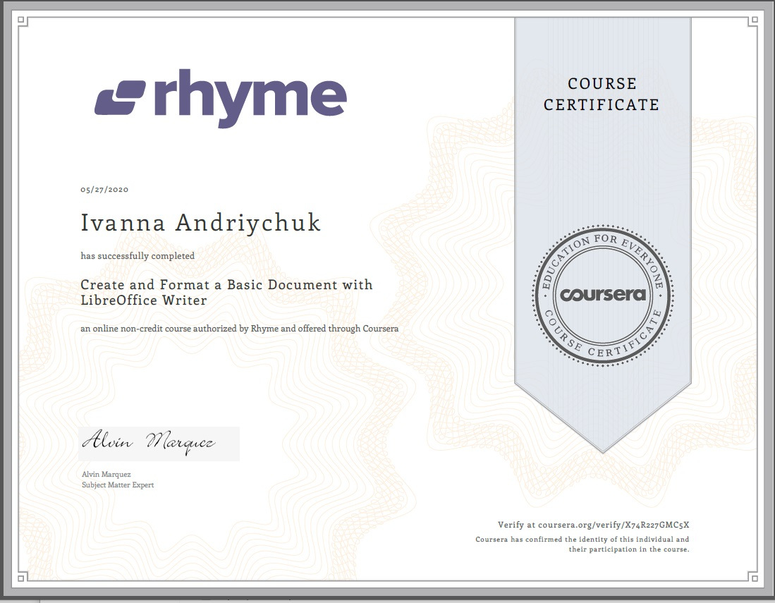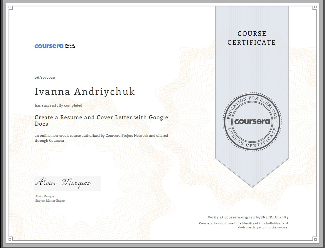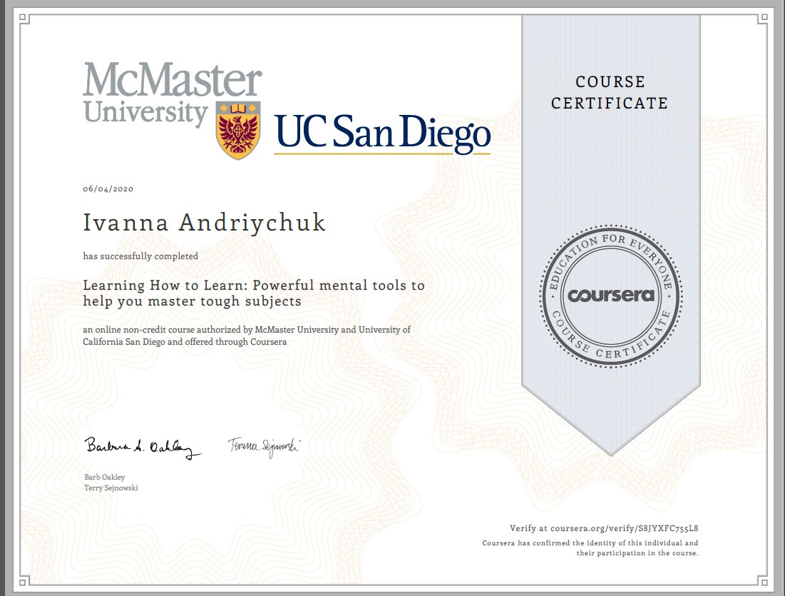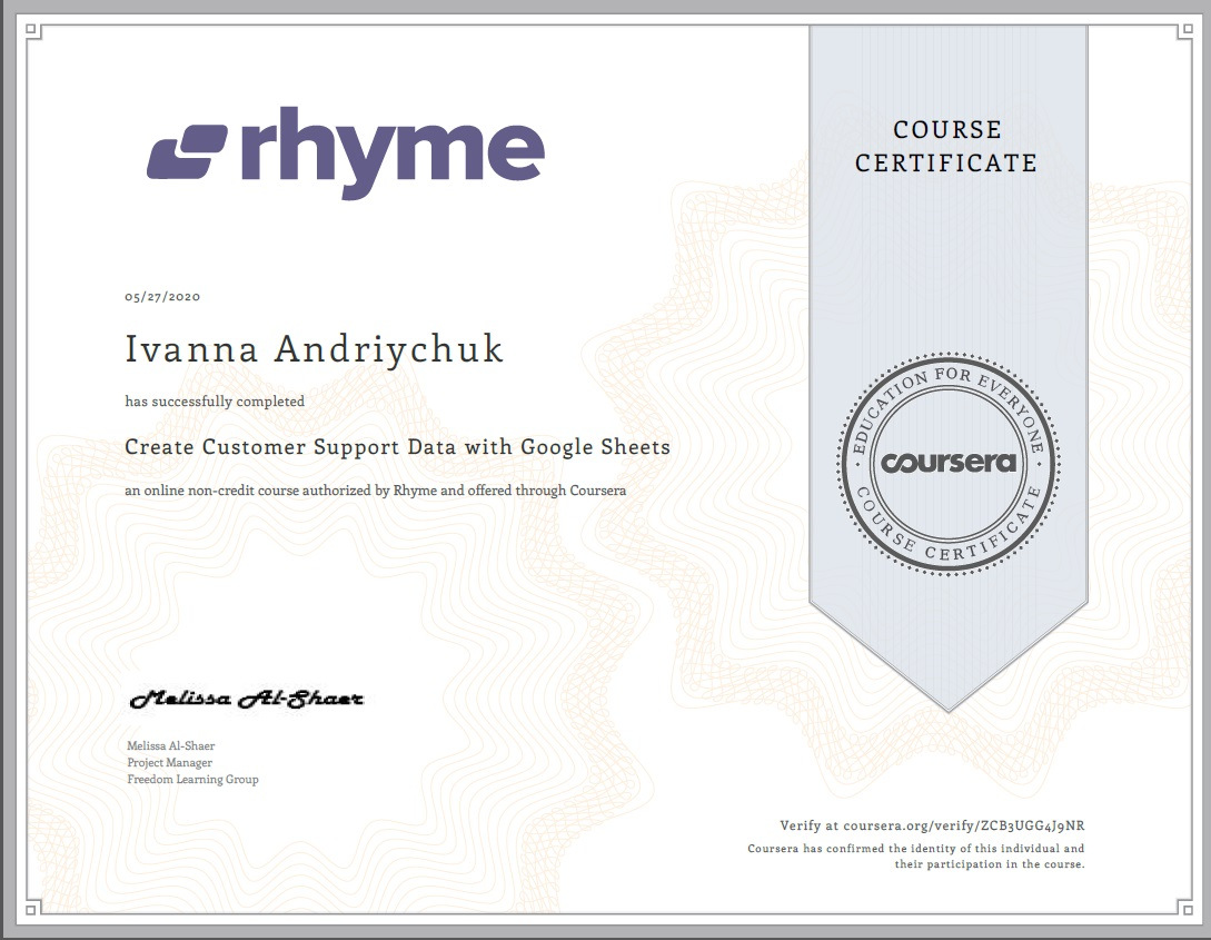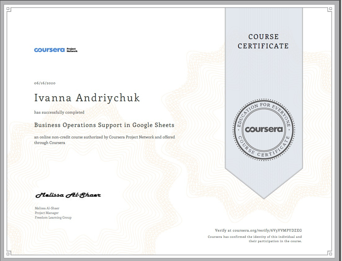 У 2001 – 2002 рр. закінчила базовий курс з Позитивної психотерапії та отримала сертифікат консультанта в напрямку позитивної психотерапії.