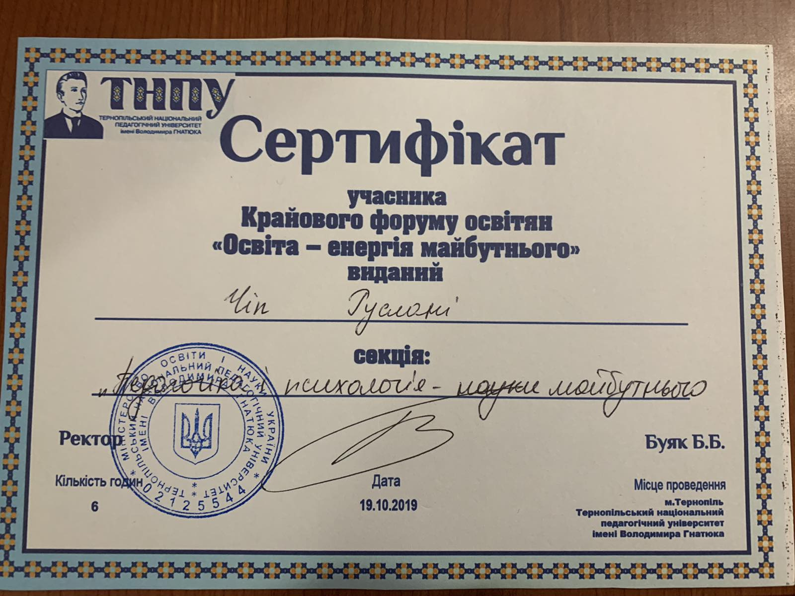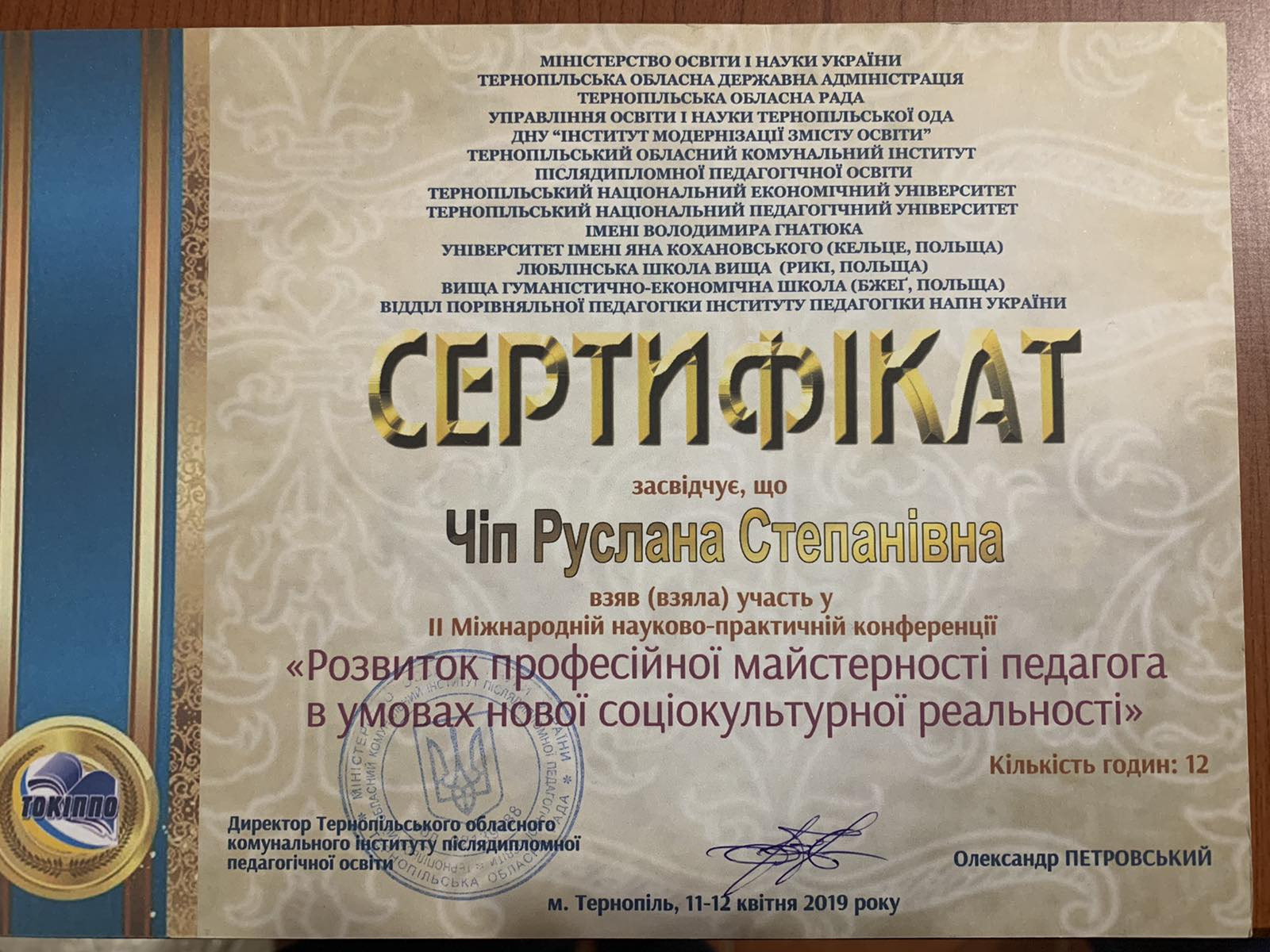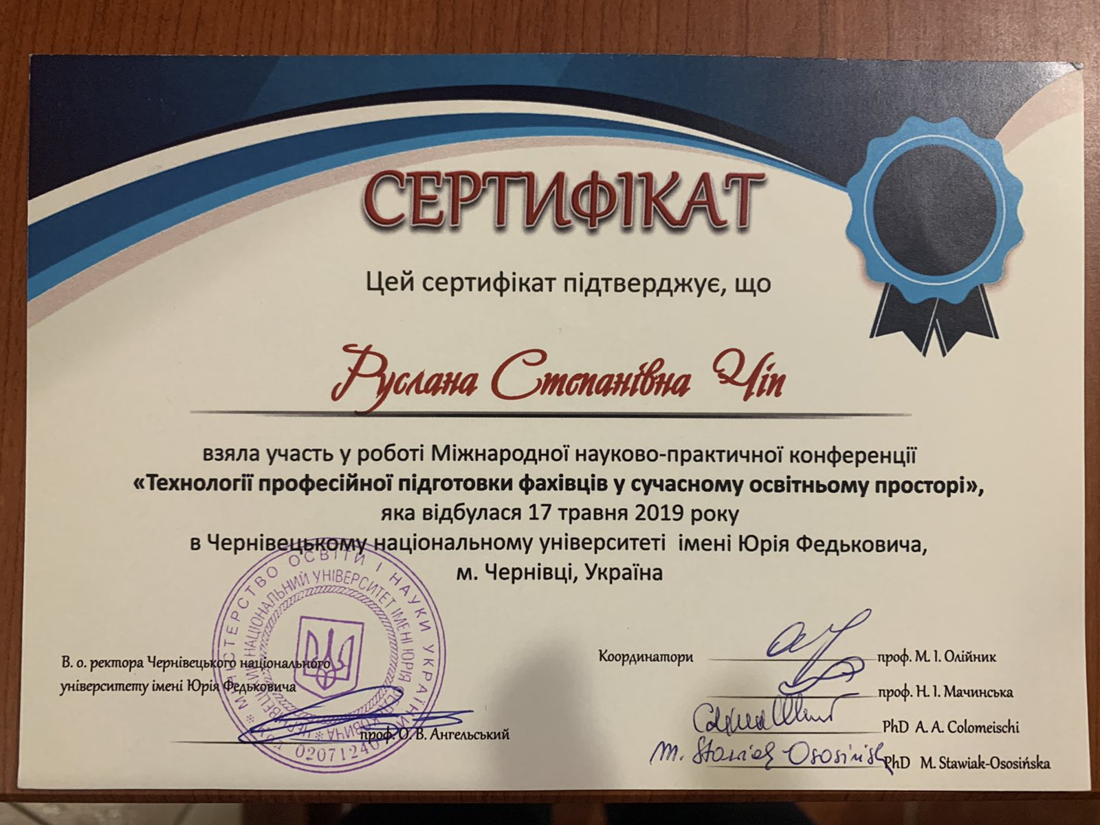 Учасниця всеукраїнських та міжнародних науково-практичних конференцій, регіональних науково-практичних семінарів.
