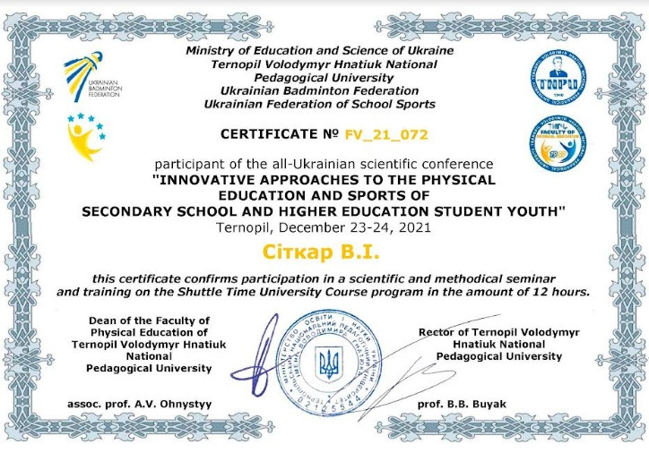 8. Cіткар В., Сіткар С. Особливості фізичного розвитку та навчання дітей: нейропсихологічний підхід. Інноваційні підходи до фізичного виховання і спорту учнівської та студентської молоді. Матеріали Всеукраїнської наукової конференції (м. Тернопіль, 23-24 грудня 2021 р.) / За заг.ред. Огнистого А. В., Огнистої К. М. Тернопіль: В-во СМТ «ТАЙП», 2021. C. 187-195.