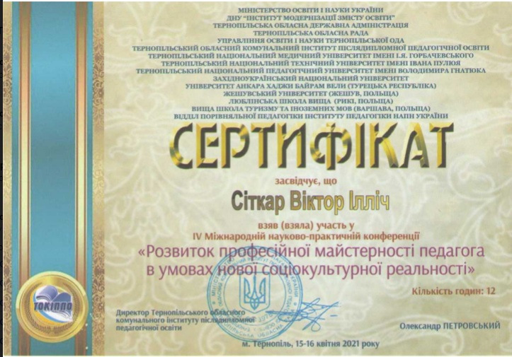 9. Сіткар В.І, Сіткар Т.В. Синтез рухової активності та діджиталізації сучасного суспільства: мотиваційний аспект. Інноваційні підходи до фізичного виховання ф спорту студентської молоді // Матеріали п’ятого регіонального науково-методичного семінару (м. Тернопіль, 18-19 грудня 2020 р) / За заг. ред. Огнистого А.В., Огнистої К.М. – Тернопіль: В-во СМТ «ТАЙП», 2020. – С. 157-160.
