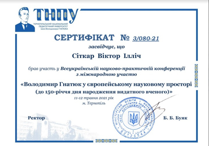 6. Cіткар В. І. Спадщина Володимира Гнатюка, яка надихає митців: субкультурна парадигма. Володимир Гнатюк у європейському науковому просторі : колективна монографія / упор. М. Б. Лановик, З. Б. Лановик. Тернопіль: Підручники і посібники, 2021. C. 276-279. ISBN 978-966-07-4011-2.