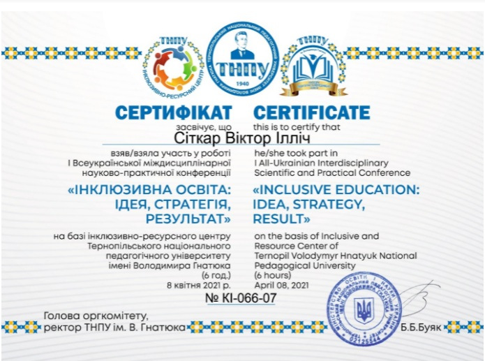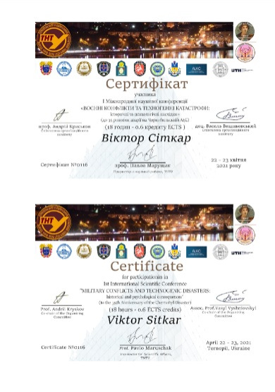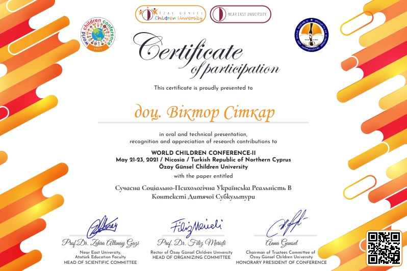 3.18. Сіткар Віктор. Сучасна соціально-психологічна українська реальність в контексті дитячої субкультури. WORLD CHILDREN CONFERENCE-II. Proceedings Book Volume-II. May 21-23, 2021 Nicosia / Turkish Republic of Northern Cyprus Özay Günsel Children University. IKSAD GLOBAL PUBLISHING HOUSE. Р. 499. ISBN: 978-605-70554-8-4. www.worldchildrenconference.org.