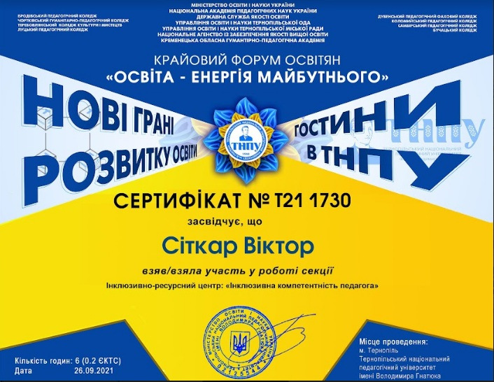 5. Сіткар В.І. Врахування особливостей розвитку дитячої субкультури в освітньому просторі / В.І. Сіткар. - Передові наукові дослідження в Україні: Матеріали Всеукраїнської науково-практичної конференції (м. Тернопіль, Україна, 27 вересня 2019 року) /Редколегія: О. М. Петровський, В. С. Мисик, І. М. Вітенко, О. І. Когут, Ю. Ч. Шайнюк, A. Janowski, Ф. І. Полянський, Т. В. Магера, М. А. Мартинів, Т. О. Сергуніна // Науковий, методичний, інформаційний збірник Тернопільського обласного комунального інституту післядипломної педагогічної освіти. – Тернопіль: ТОКІППО, 2019. – С. 118-122.