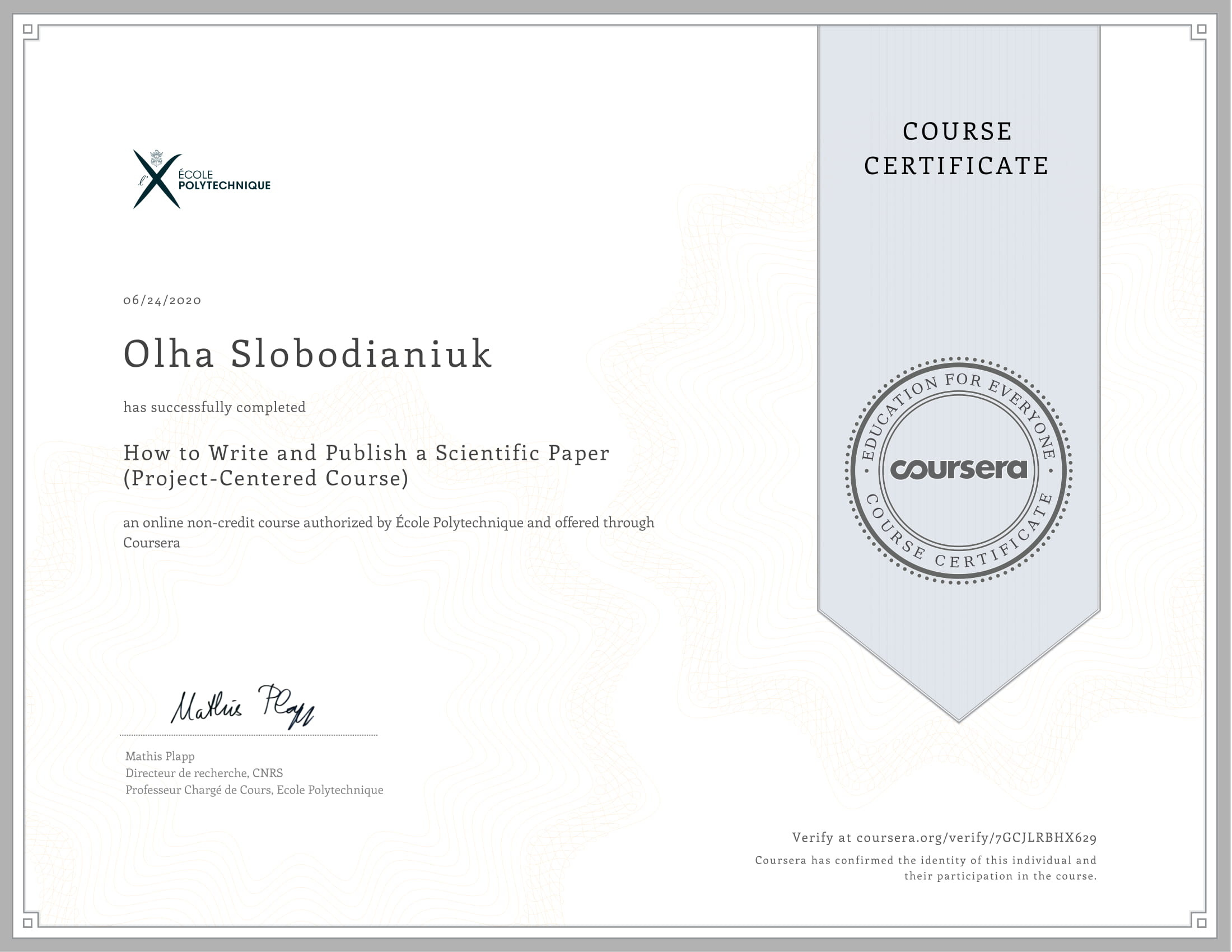 Є автором робочих програм з навчальних дисциплін «Психологія стресу», «Експериментальні методи в сучасних психологічних дослідженнях» та ряду наукових статей за темою дисертації.