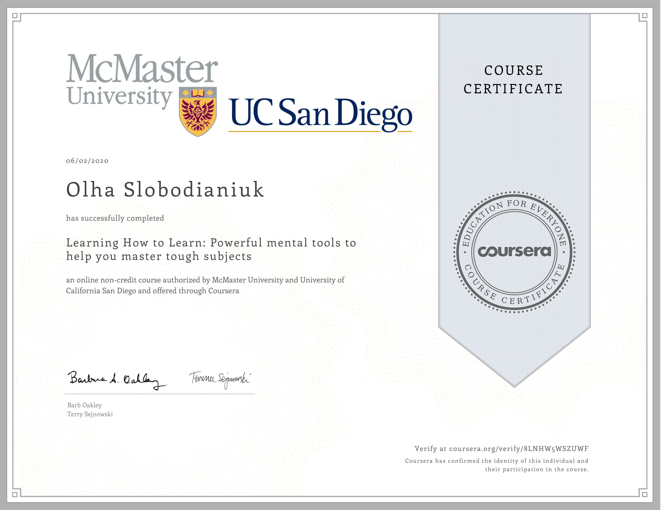 «Learning how to learn: powerful mental tools to help you master tough subjects»