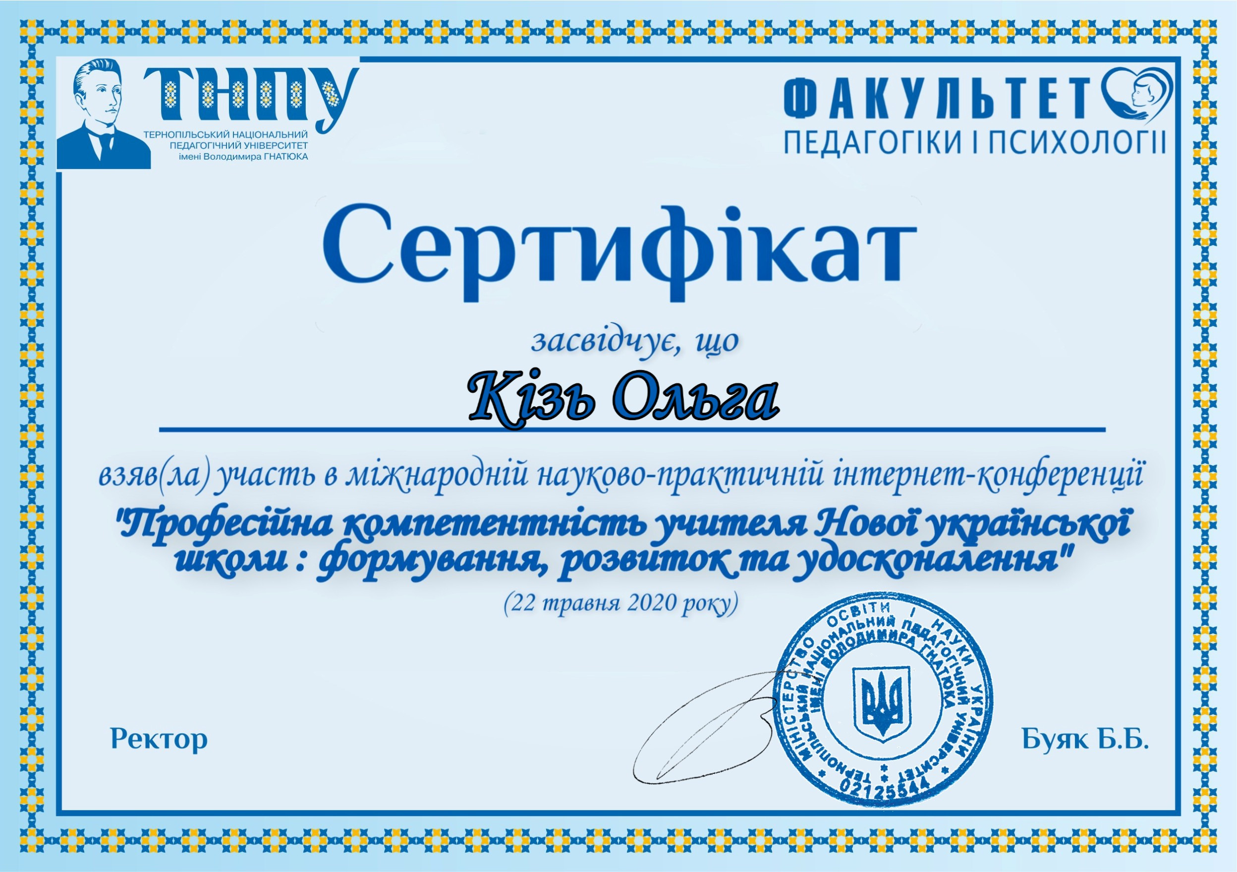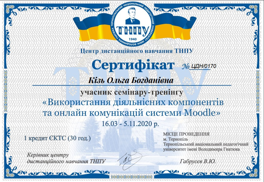 Навчальна програма «Методика створення електронних курсів в системі MOODLE» ТНПУ ім.ВГнатюка, сертифікат №271ІПП, 2010 р.