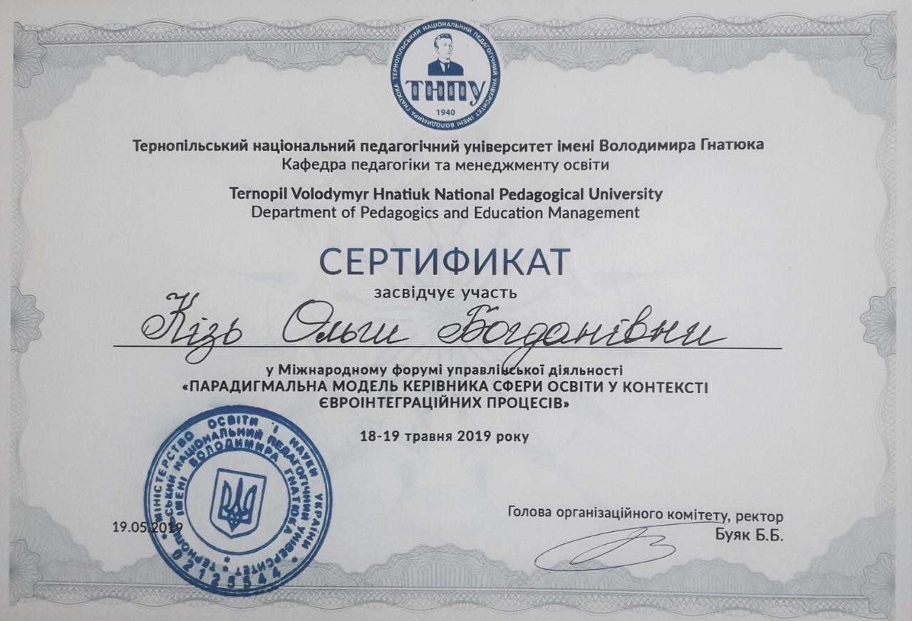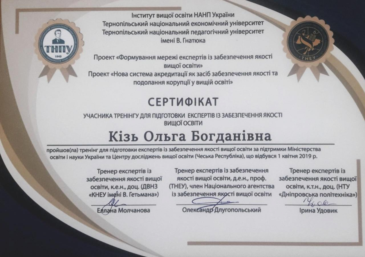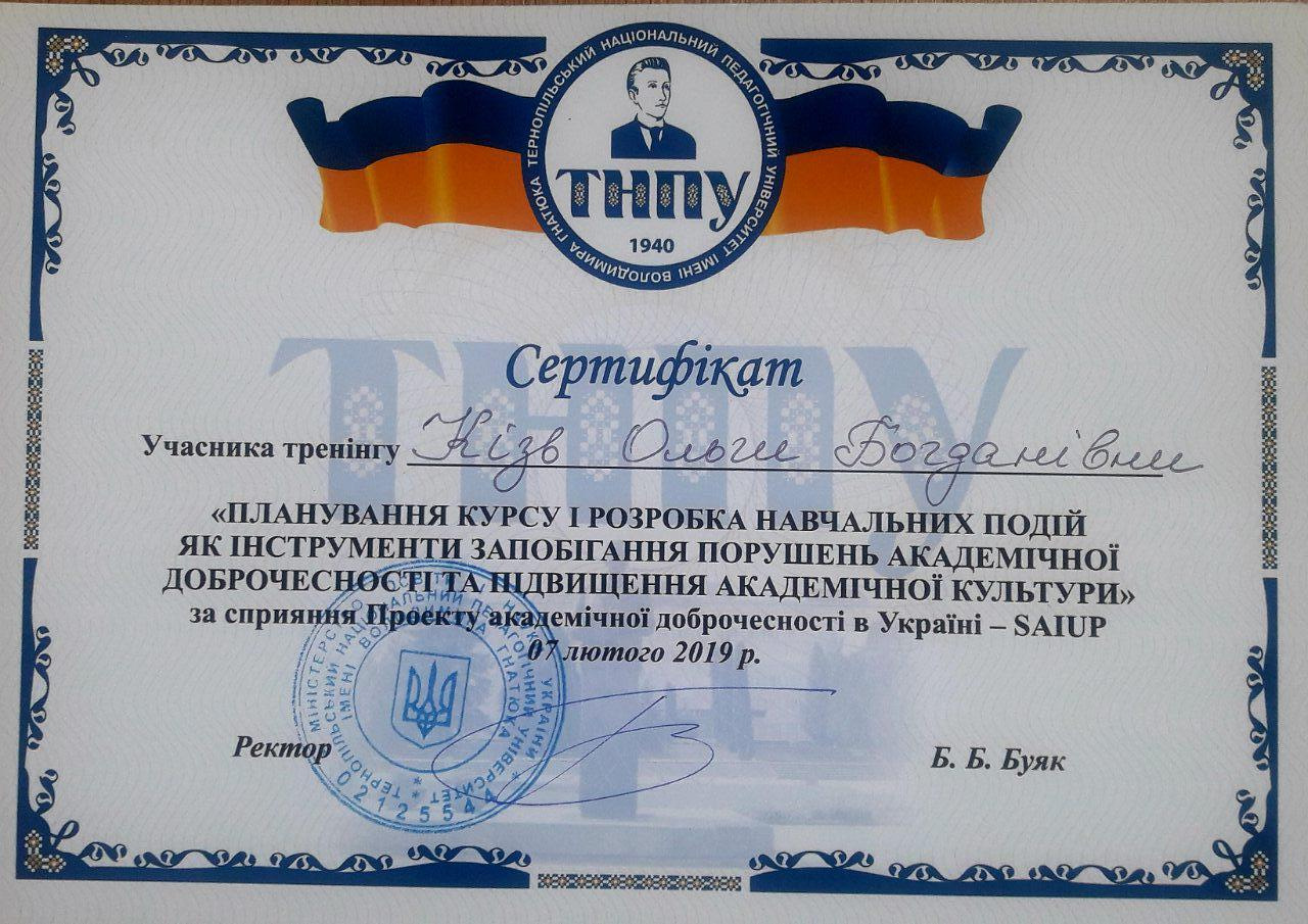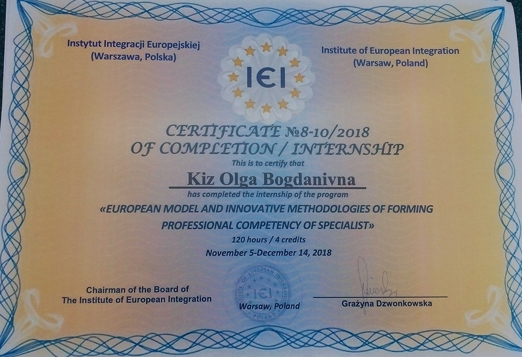 Систематично підвищує рівень своєї кваліфікації, проходить навчальні програми:
