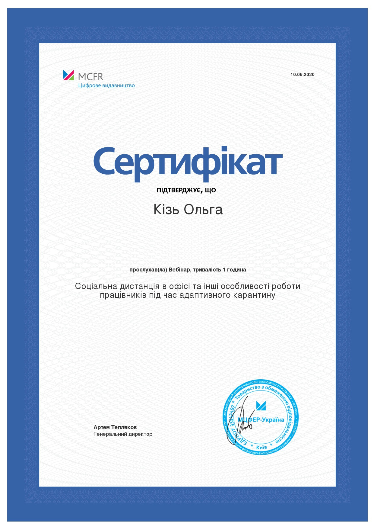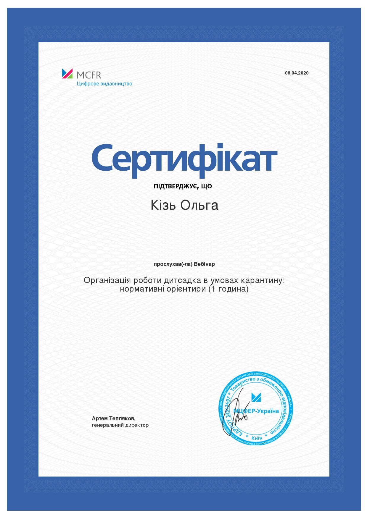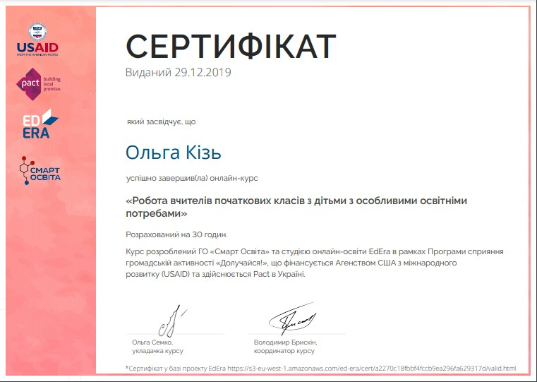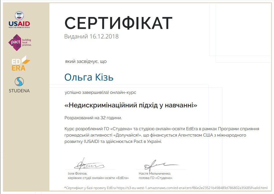 Систематично підвищує рівень своєї кваліфікації, проходить навчальні програми:
