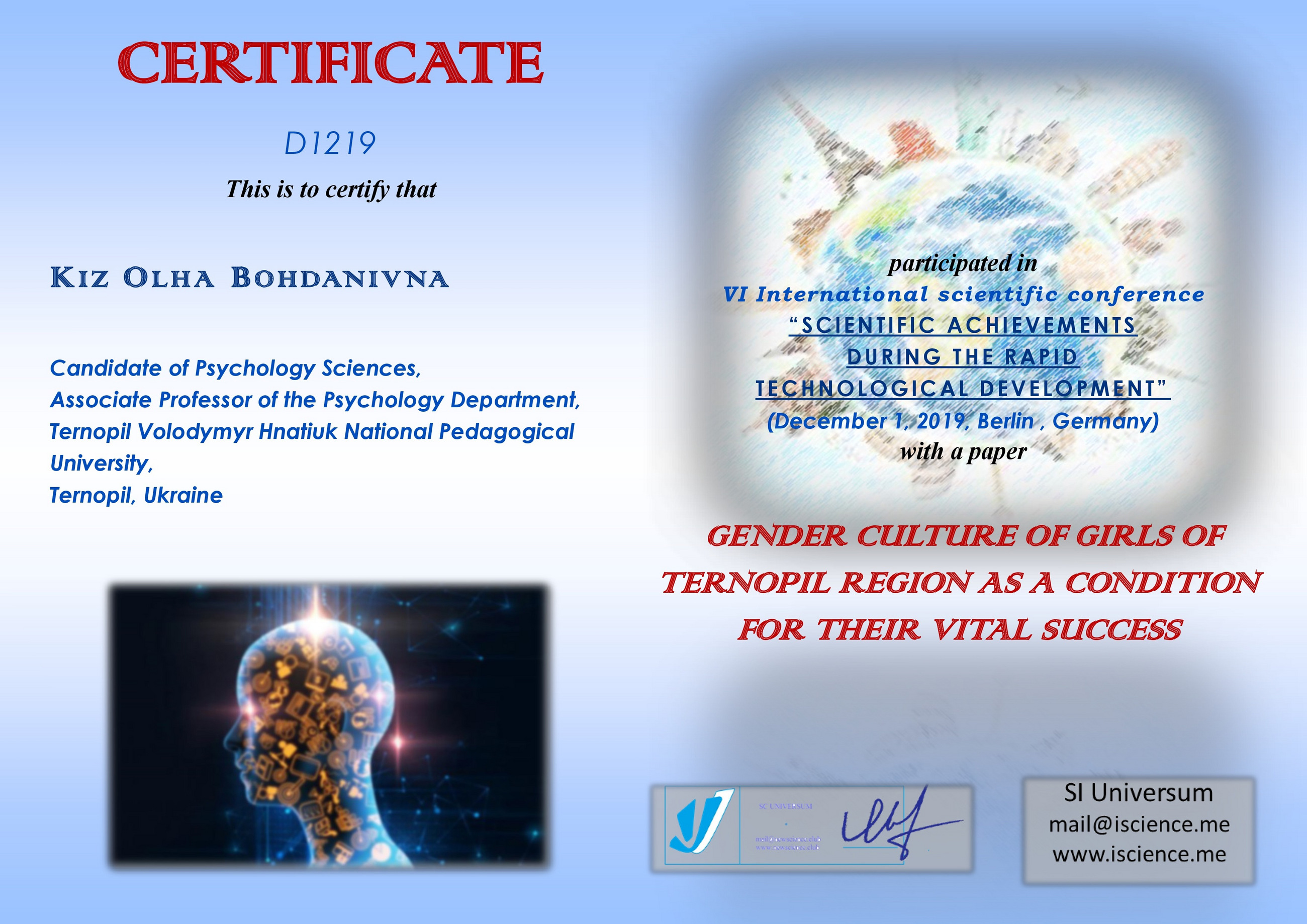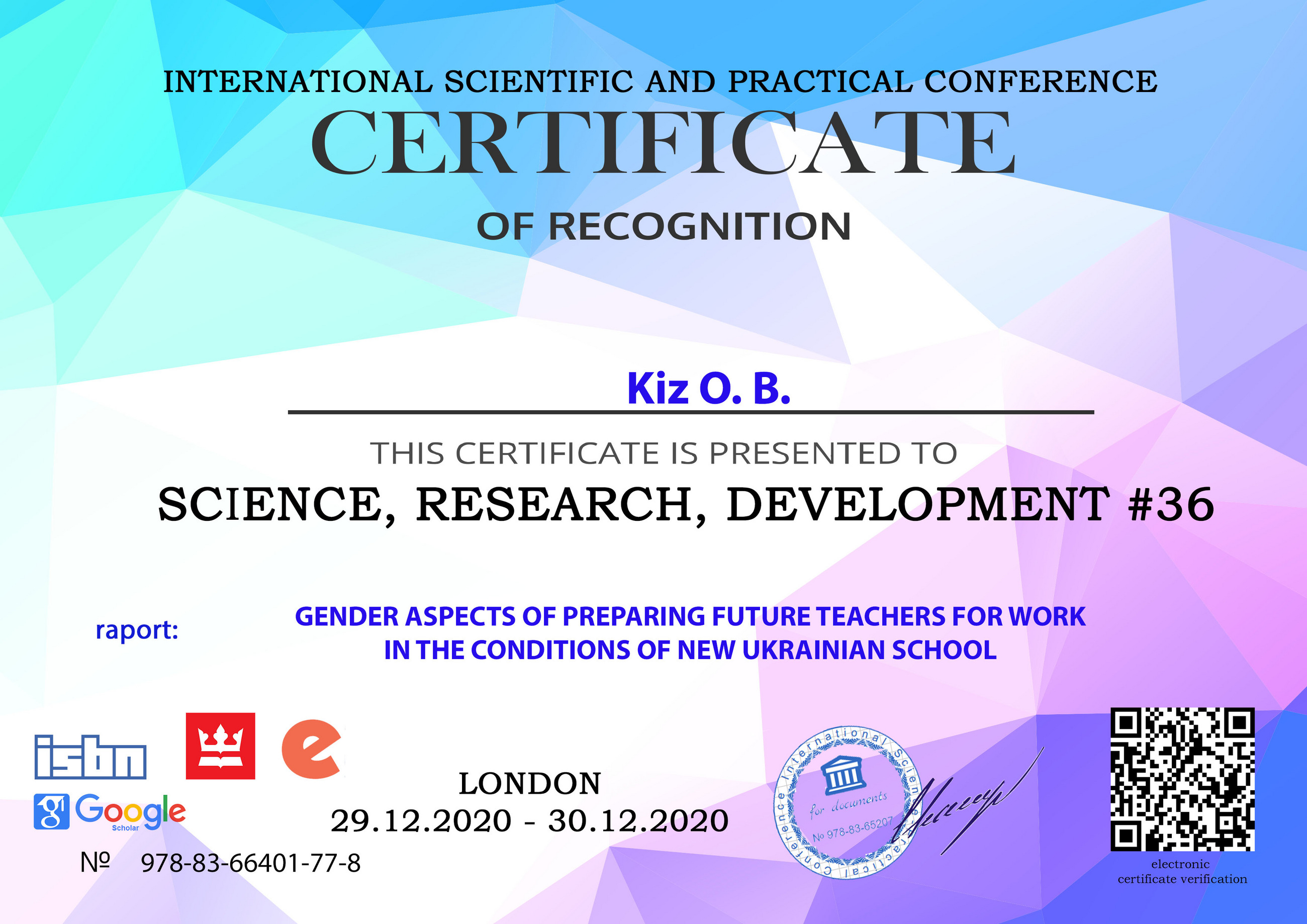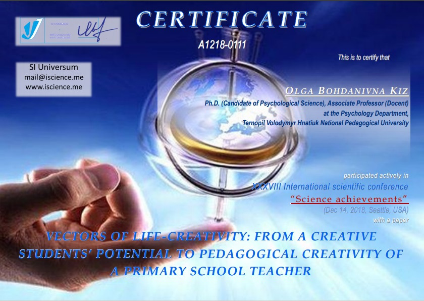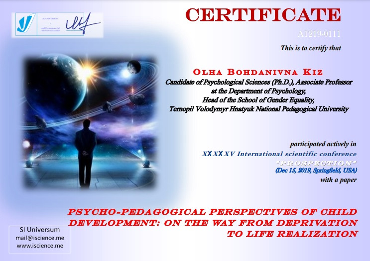 Кіz О. B. GENDER IDENTITY OF THE DEPRIVED YOUTH / О. B. Кіz // Międzynarodowa konferencja naukowo-praktyczna "rozwój i praktyka», 29.12.2017, m.Zakopane (Poland). – Sp. z o.o. "Diamond trading tour"? 2017. – P.58-63