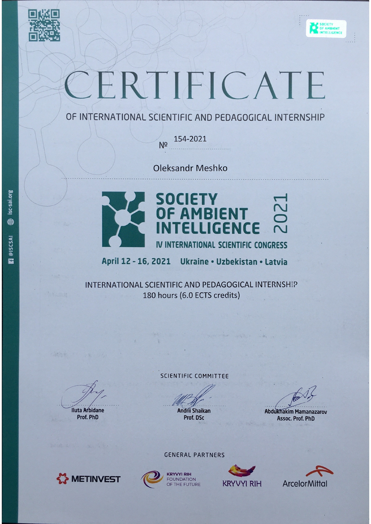 7. The development of the future teacher subjectivity formation as an aspect of his professional position / Oleksandr Meshko // International Journal of Social and Educational Innovation (IJSEIro). – Suceava (Romania). – 2016. – Volume 3, Issue 6. – S. 57–66.