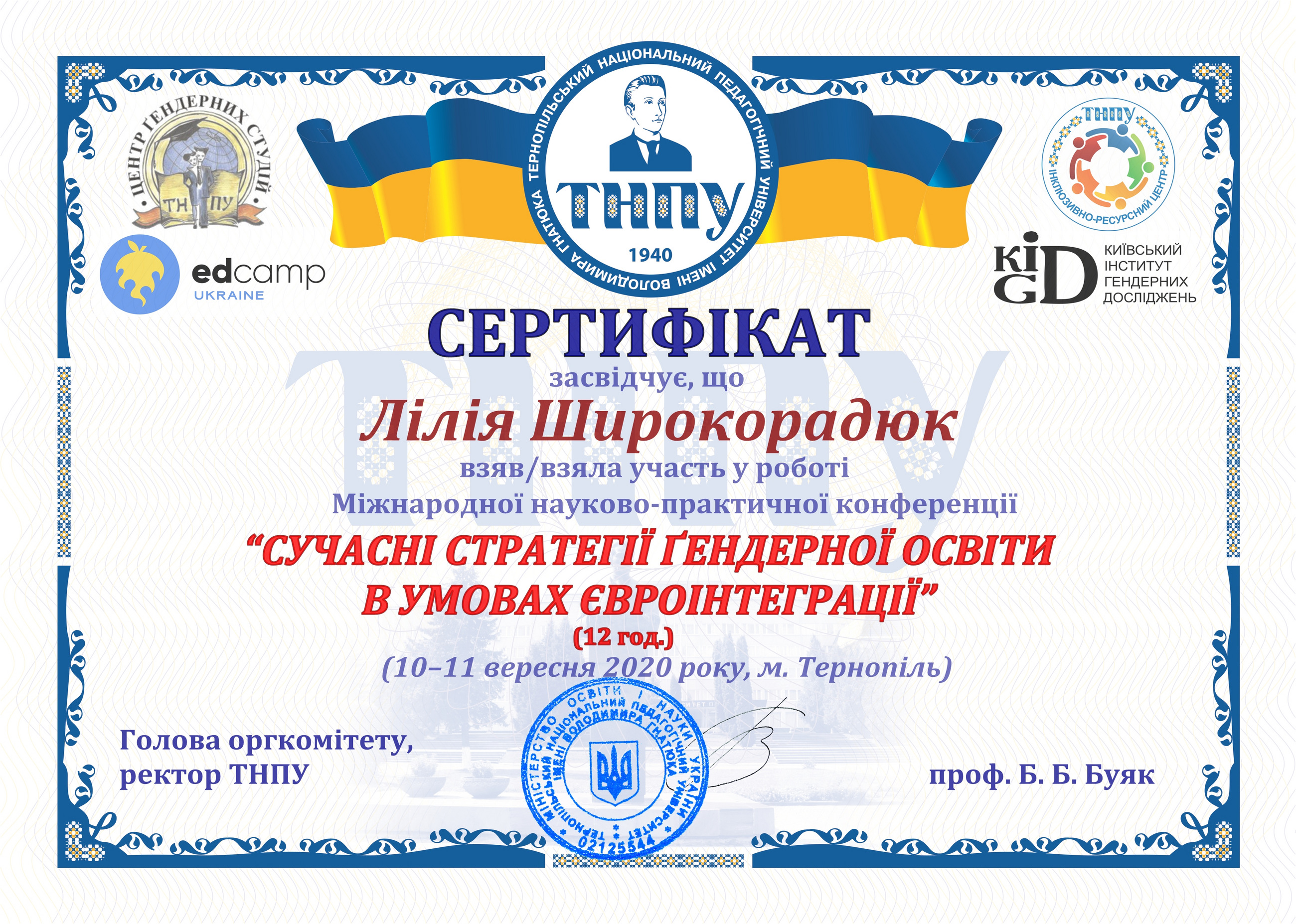 За час роботи на кафедрі Широкорадюк Лілія Анатоліївна взяла участь у понад 50 всеукраїнських та міжнародних науково-практичних конференціях, неодноразово була головою ДЕКу на психолого-педагогічному відділенні інституту педагогіки і психології.