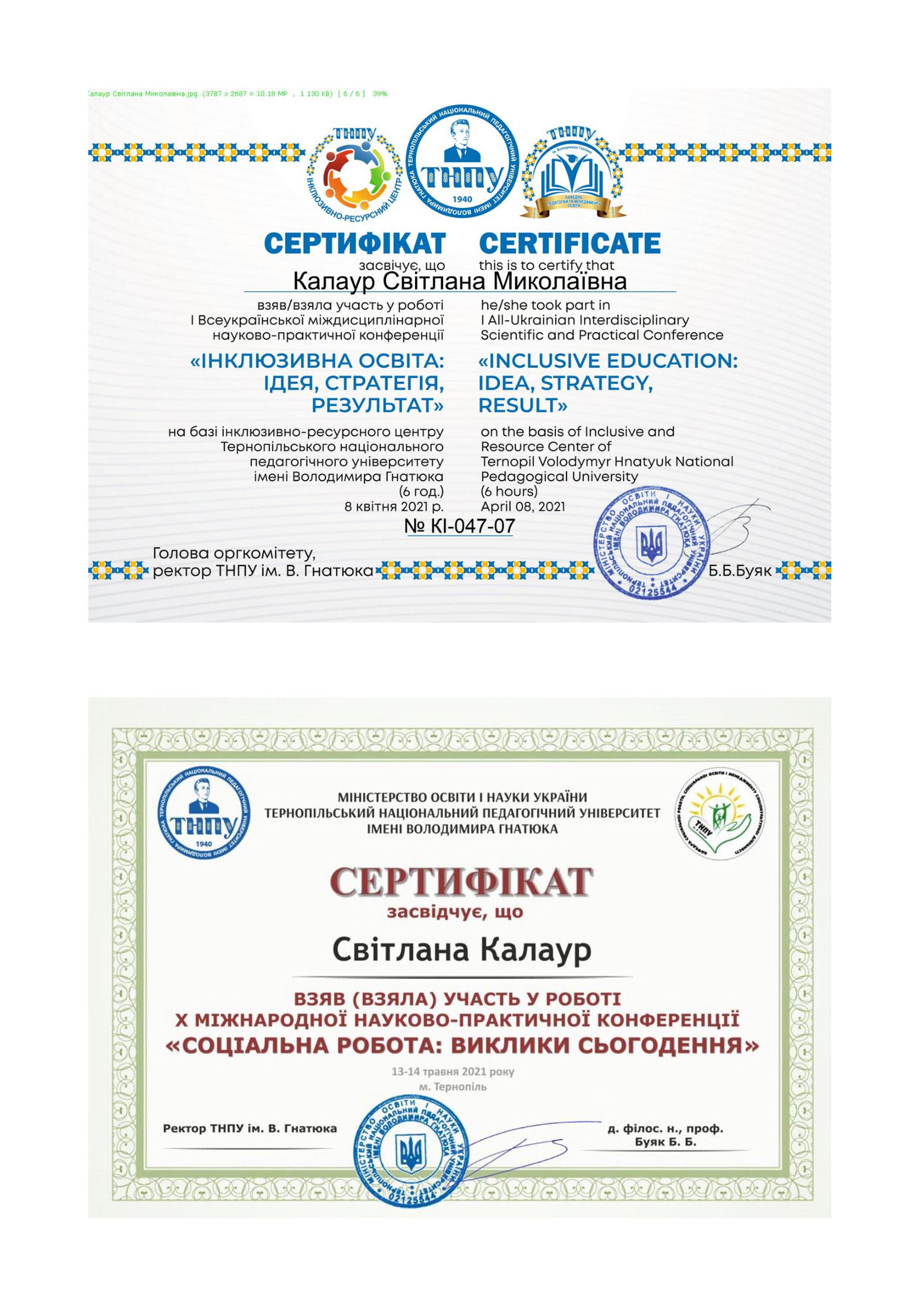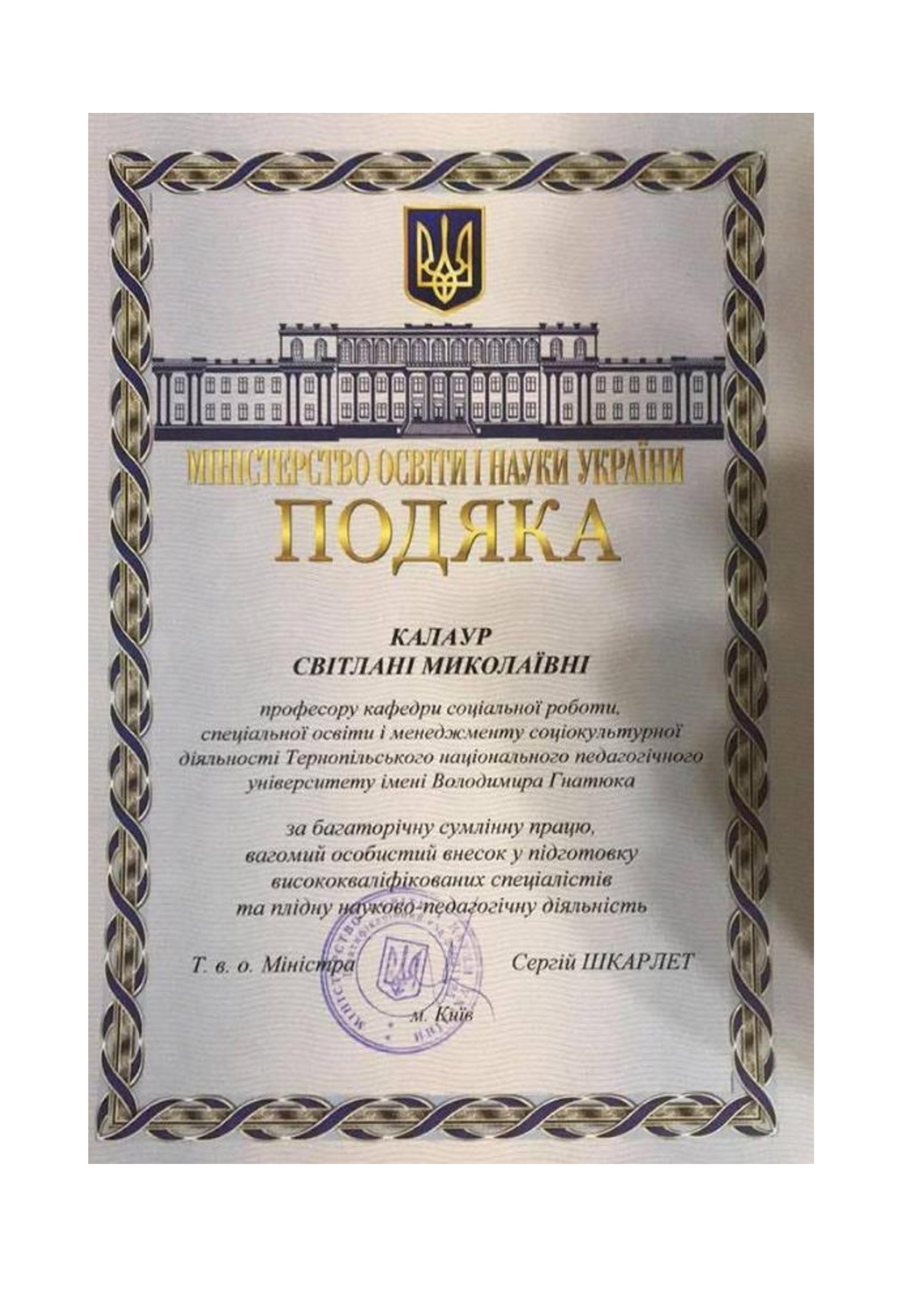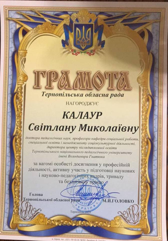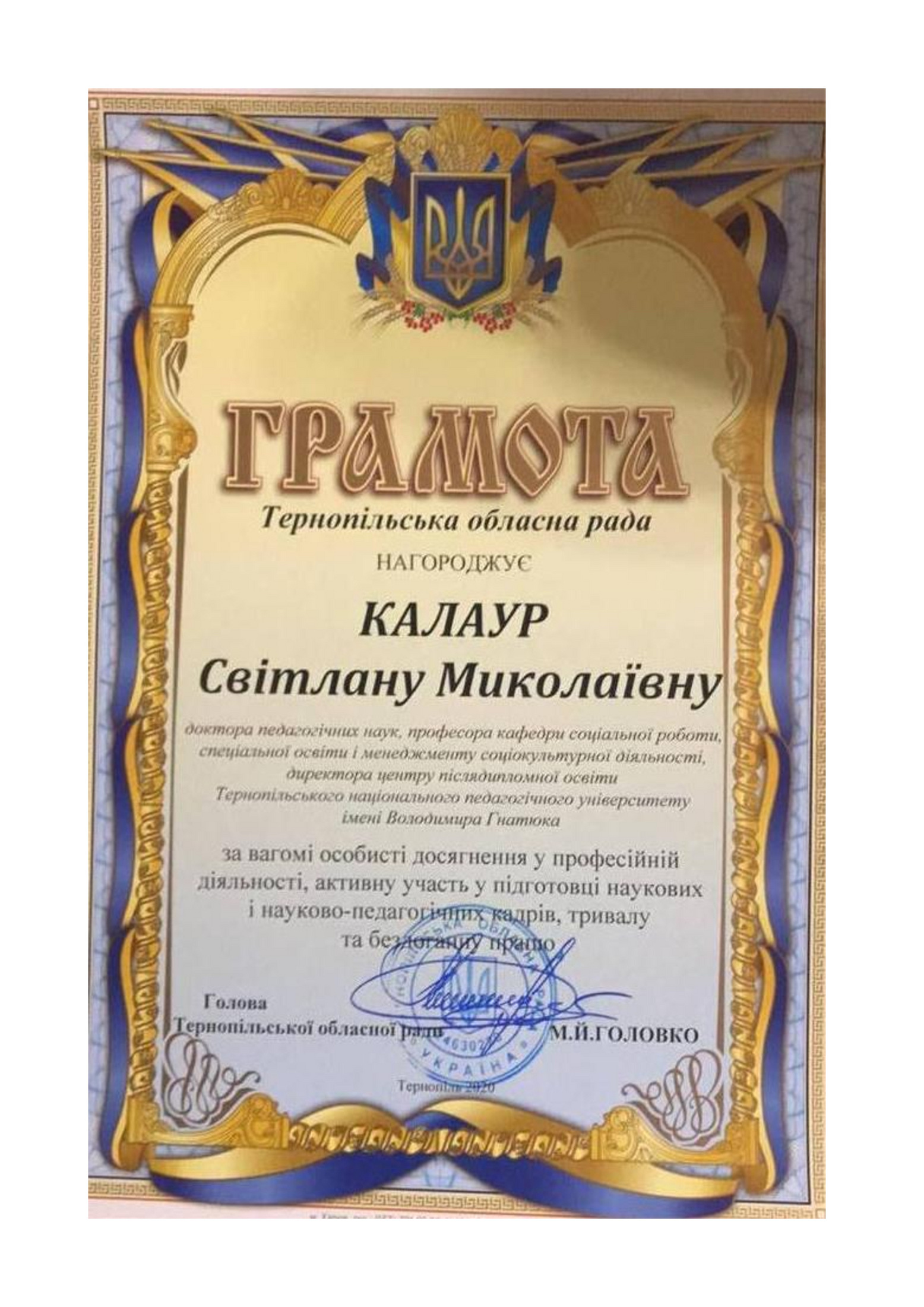 - Калаур С.М. Теорія і методика професійної підготовки майбутніх фахівців соціальної сфери до розв’язання конфліктів у професійній діяльності : монографія. – Тернопіль : Осадца Ю.В., 2018. – 456 с.
