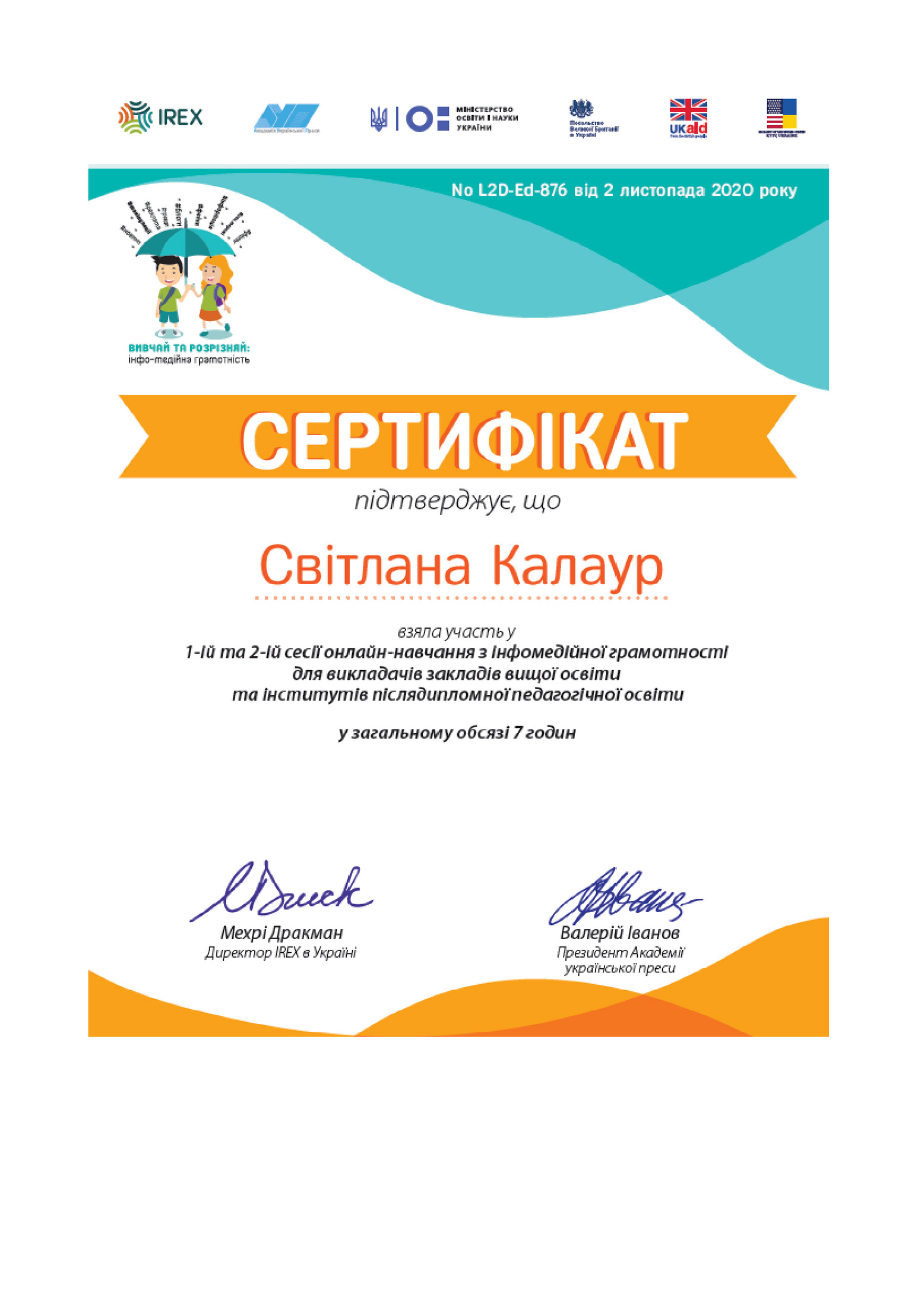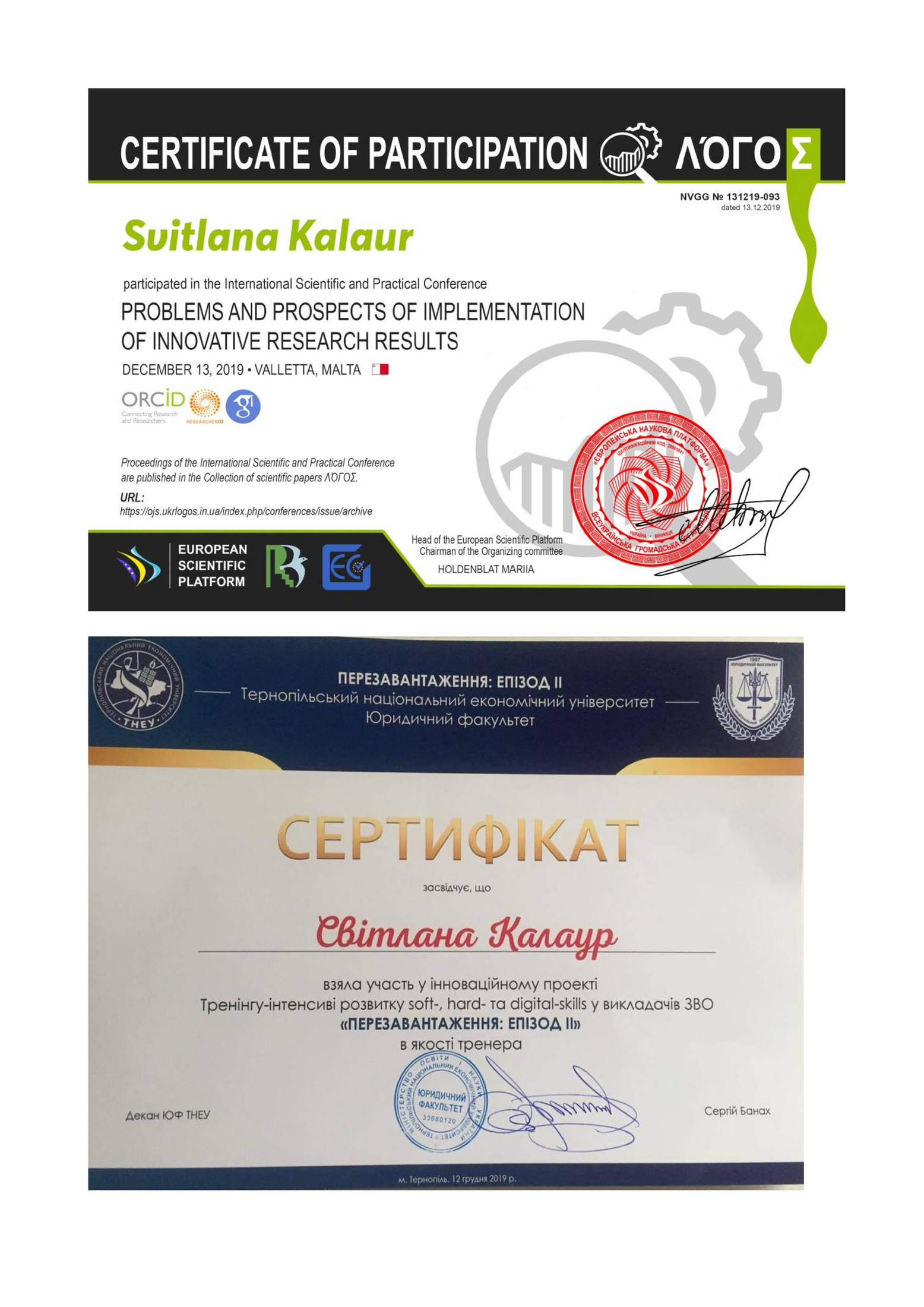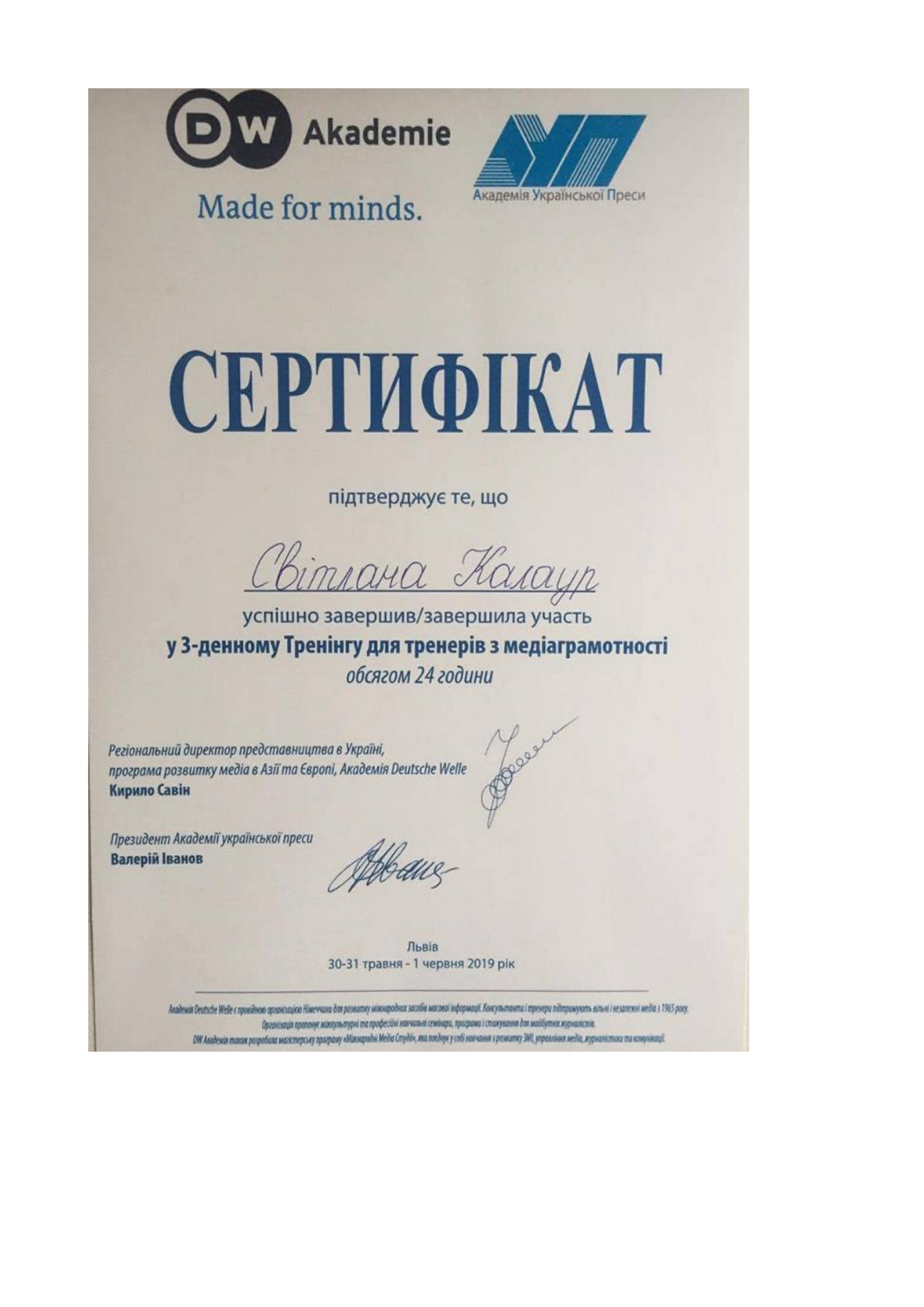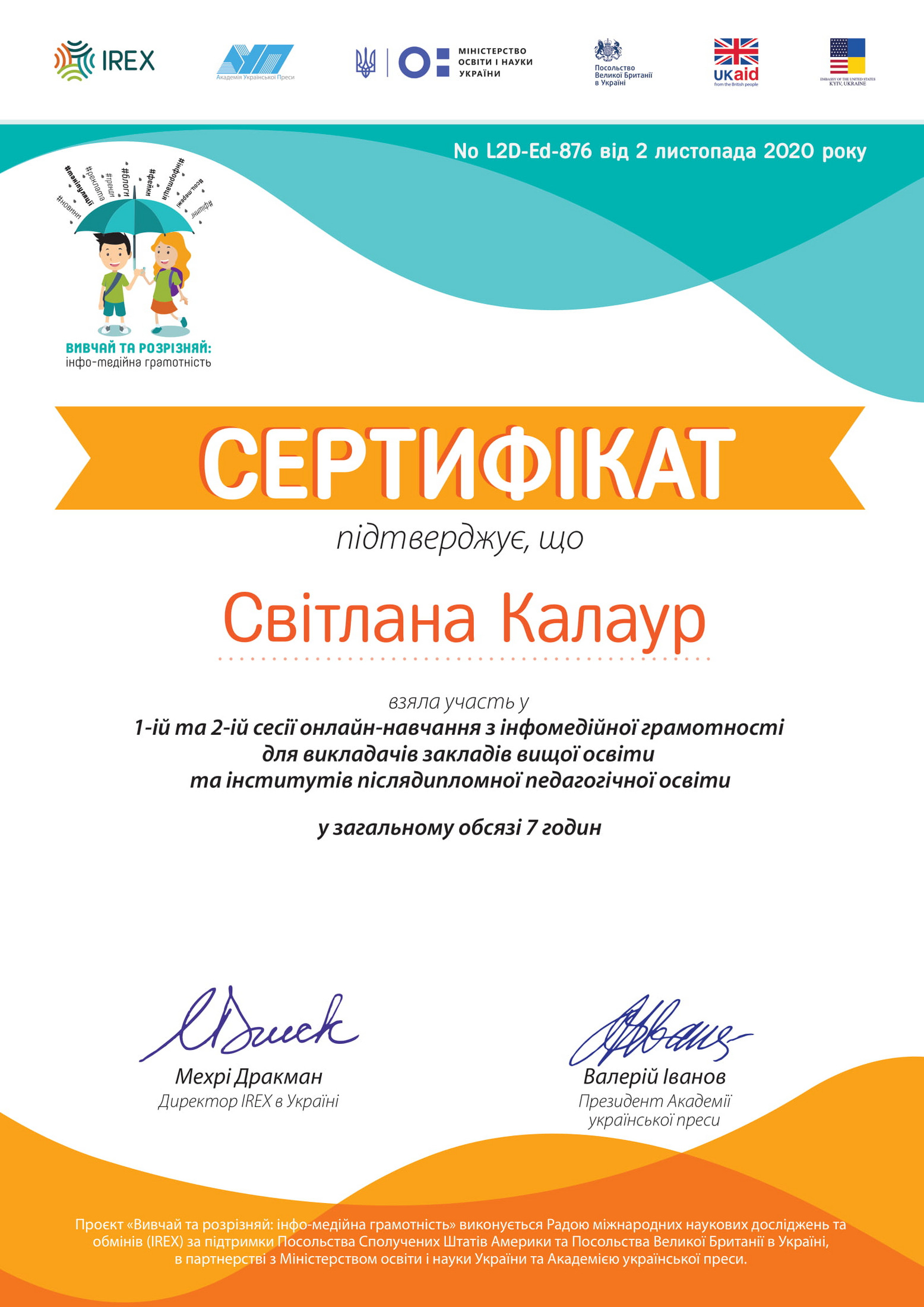 - Калаур С.М. Теорія і методика професійної підготовки майбутніх фахівців соціальної сфери до розв’язання конфліктів у професійній діяльності : монографія. – Тернопіль : Осадца Ю.В., 2018. – 456 с.